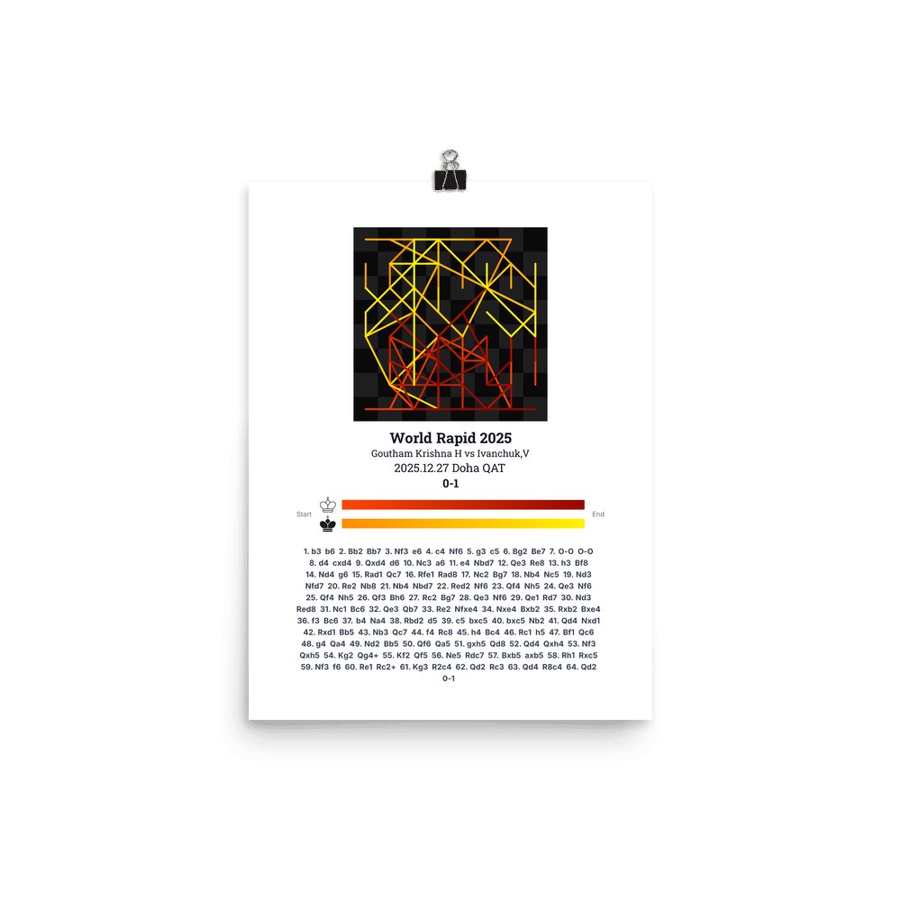 Museum-quality poster on thick, durable matte paper. A sharp, clean look for any chess visualisation.
