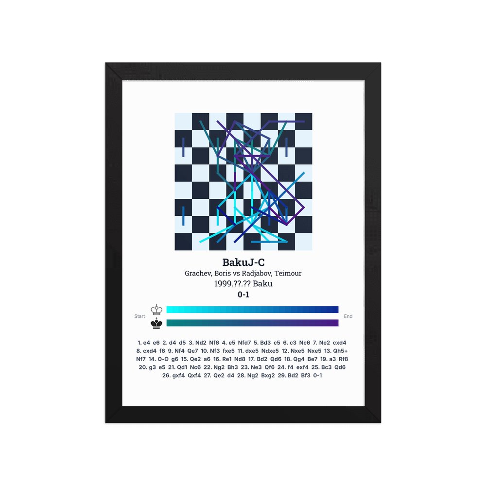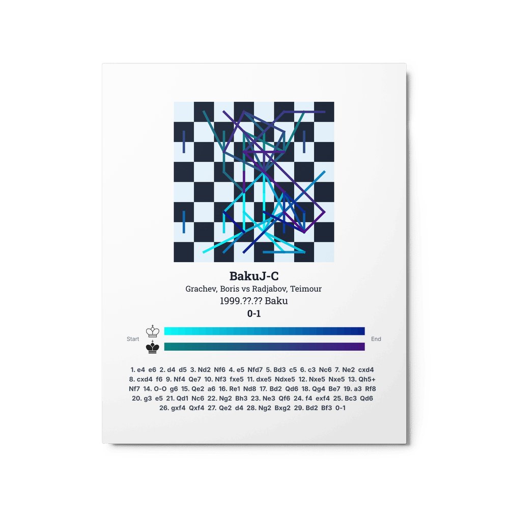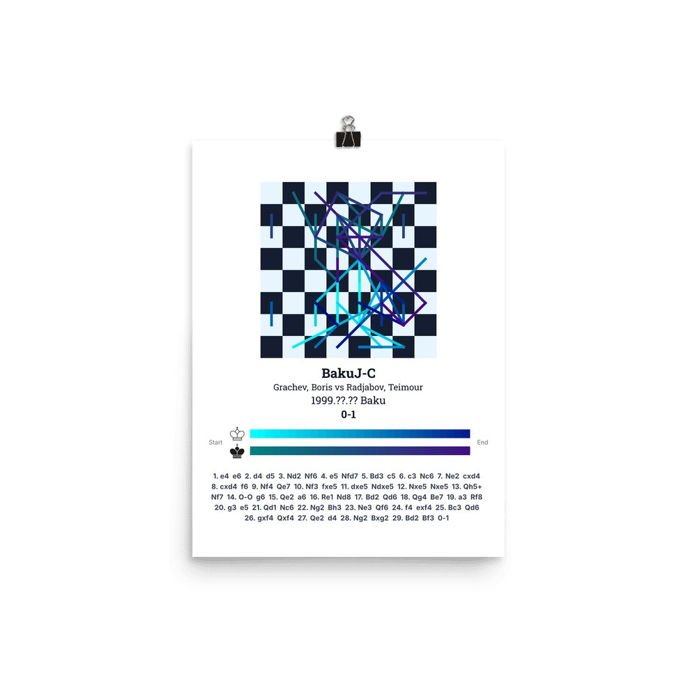 Museum-quality poster on thick, durable matte paper. A sharp, clean look for any chess visualisation.