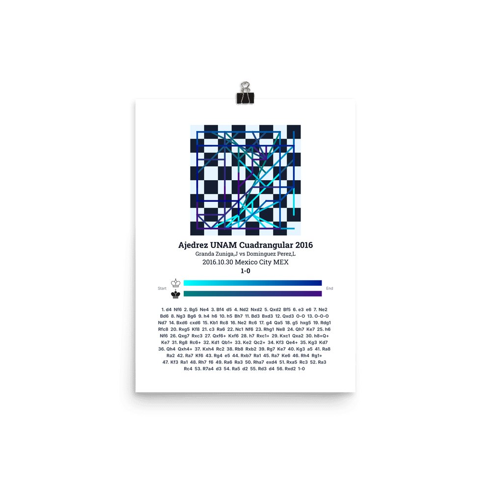 Museum-quality poster on thick, durable matte paper. A sharp, clean look for any chess visualisation.