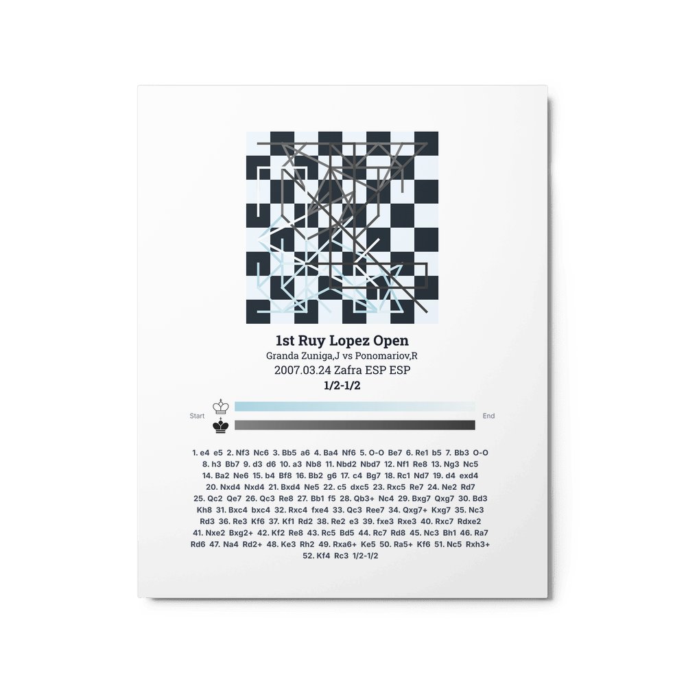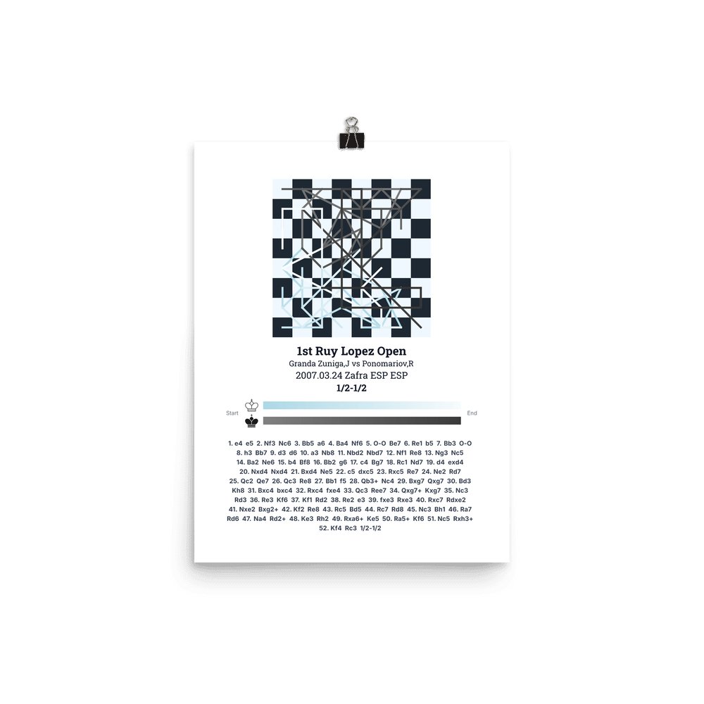 Museum-quality poster on thick, durable matte paper. A sharp, clean look for any chess visualisation.