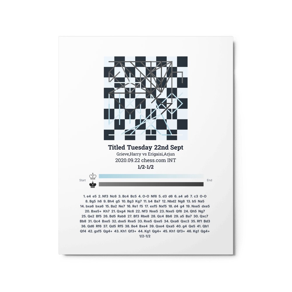 Museum-quality poster on thick, durable matte paper. A sharp, clean look for any chess visualisation.