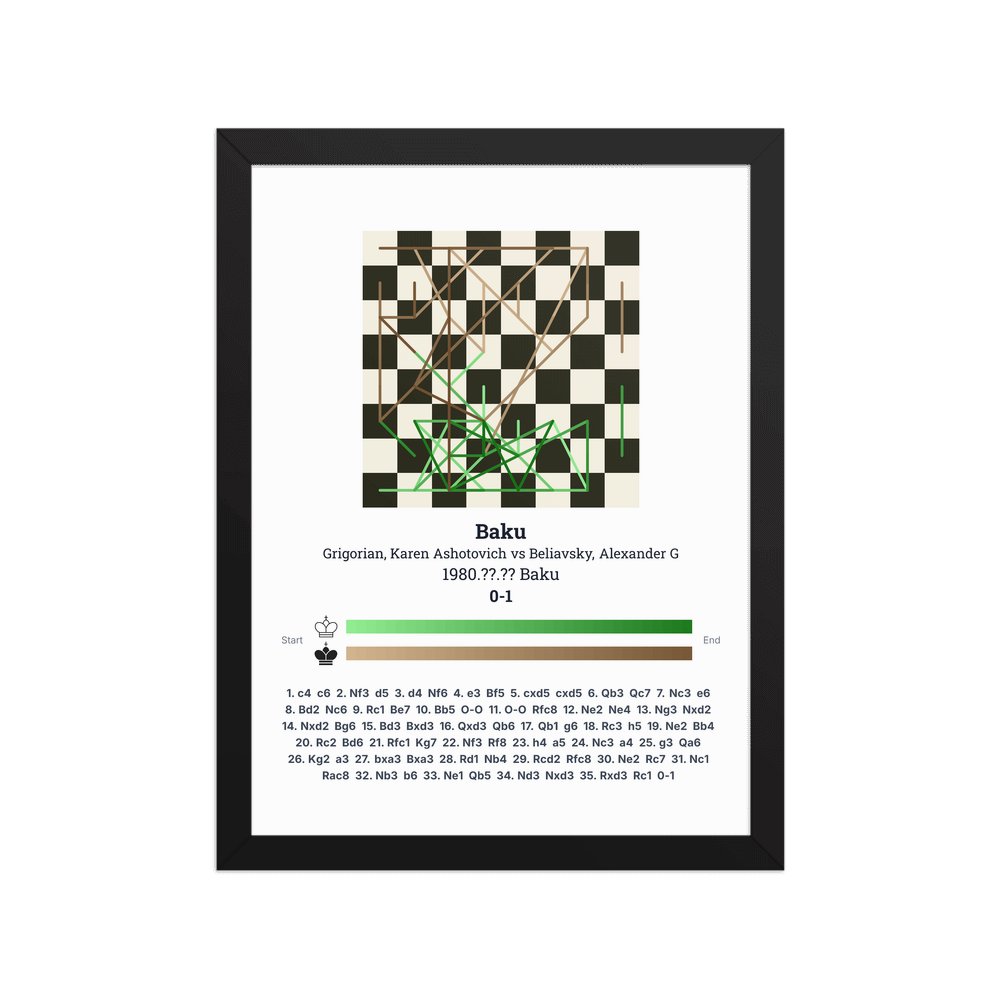 Museum-quality poster on thick, durable matte paper. A sharp, clean look for any chess visualisation.