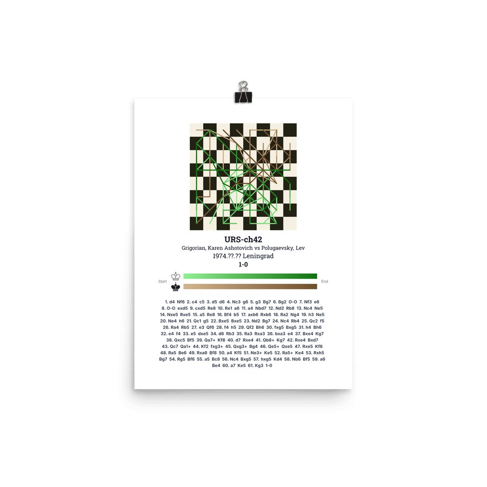 Museum-quality poster on thick, durable matte paper. A sharp, clean look for any chess visualisation.
