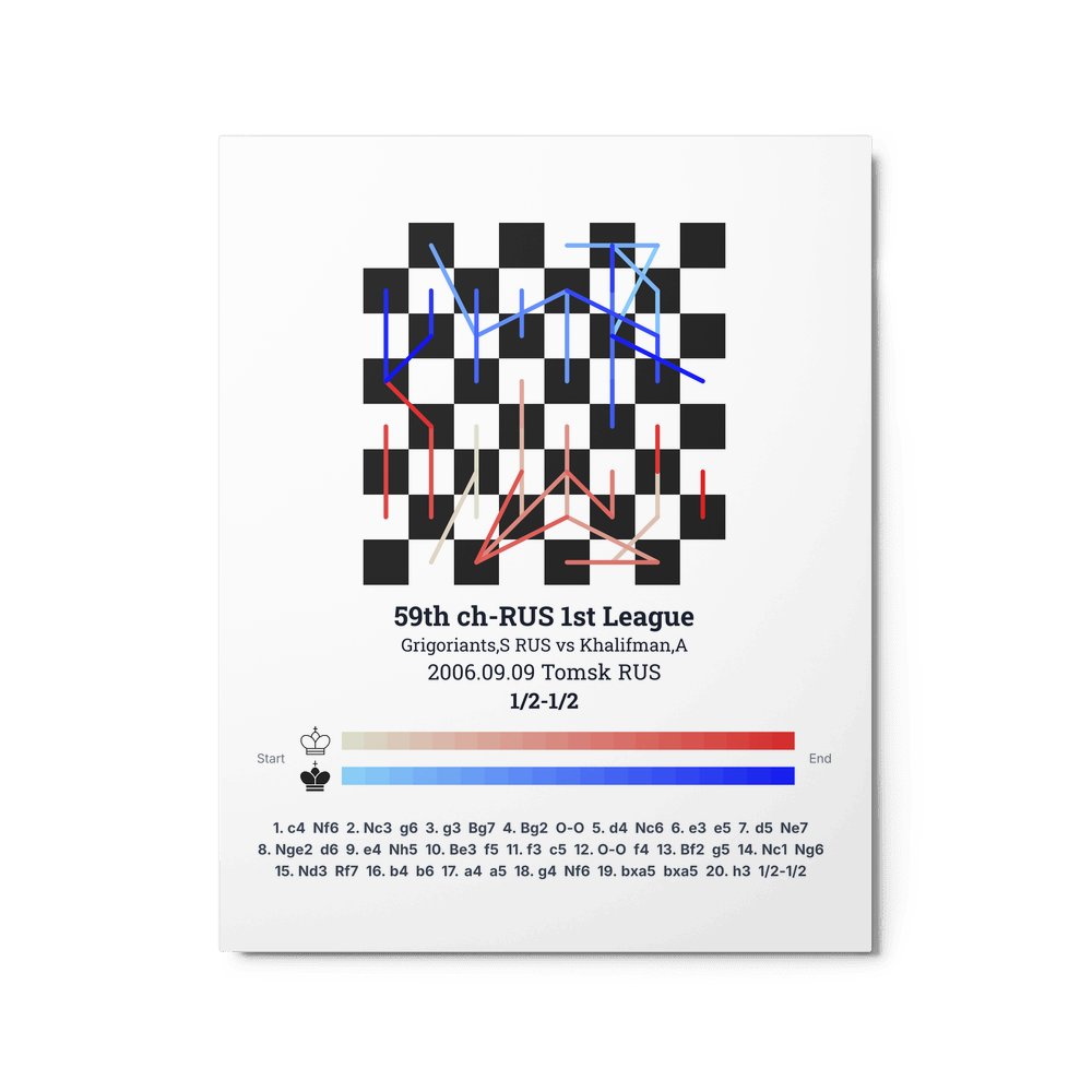 Museum-quality poster on thick, durable matte paper. A sharp, clean look for any chess visualisation.