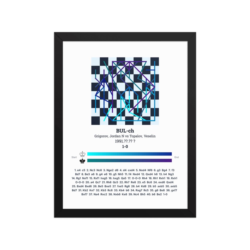 Museum-quality poster on thick, durable matte paper. A sharp, clean look for any chess visualisation.