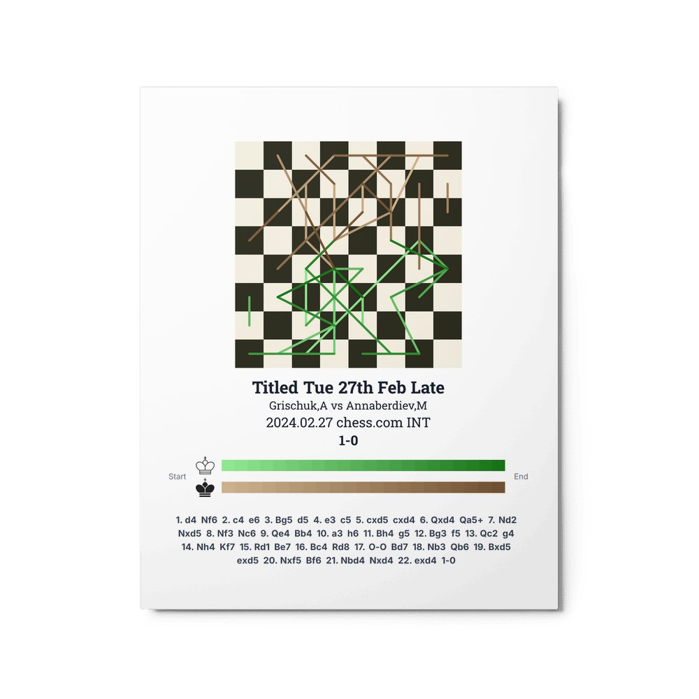 Museum-quality poster on thick, durable matte paper. A sharp, clean look for any chess visualisation.