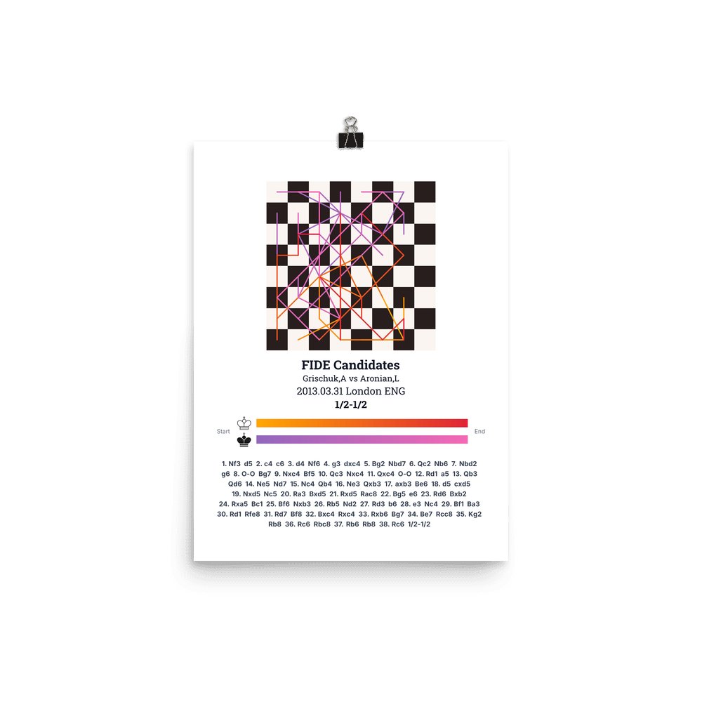 Museum-quality poster on thick, durable matte paper. A sharp, clean look for any chess visualisation.