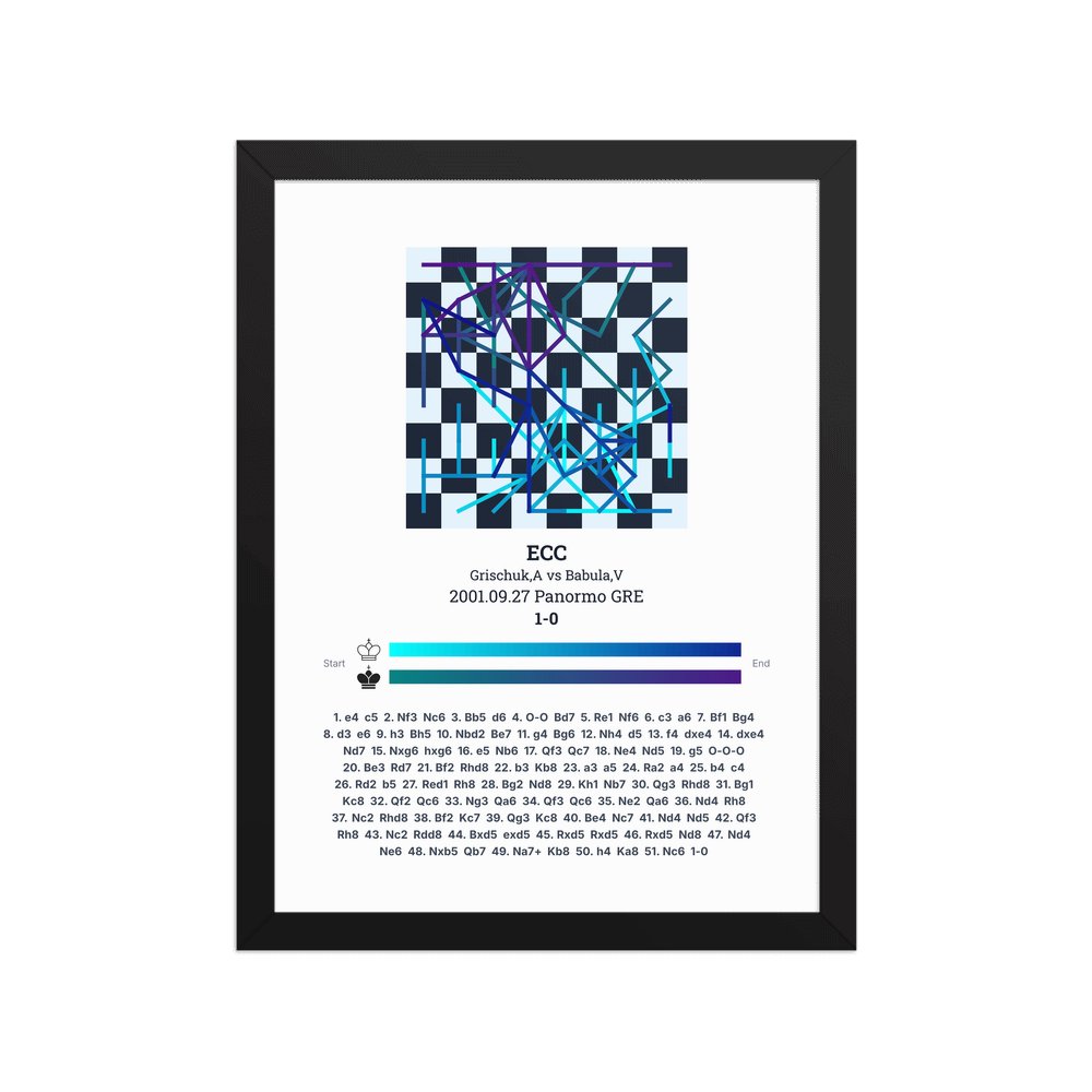 Museum-quality poster on thick, durable matte paper. A sharp, clean look for any chess visualisation.