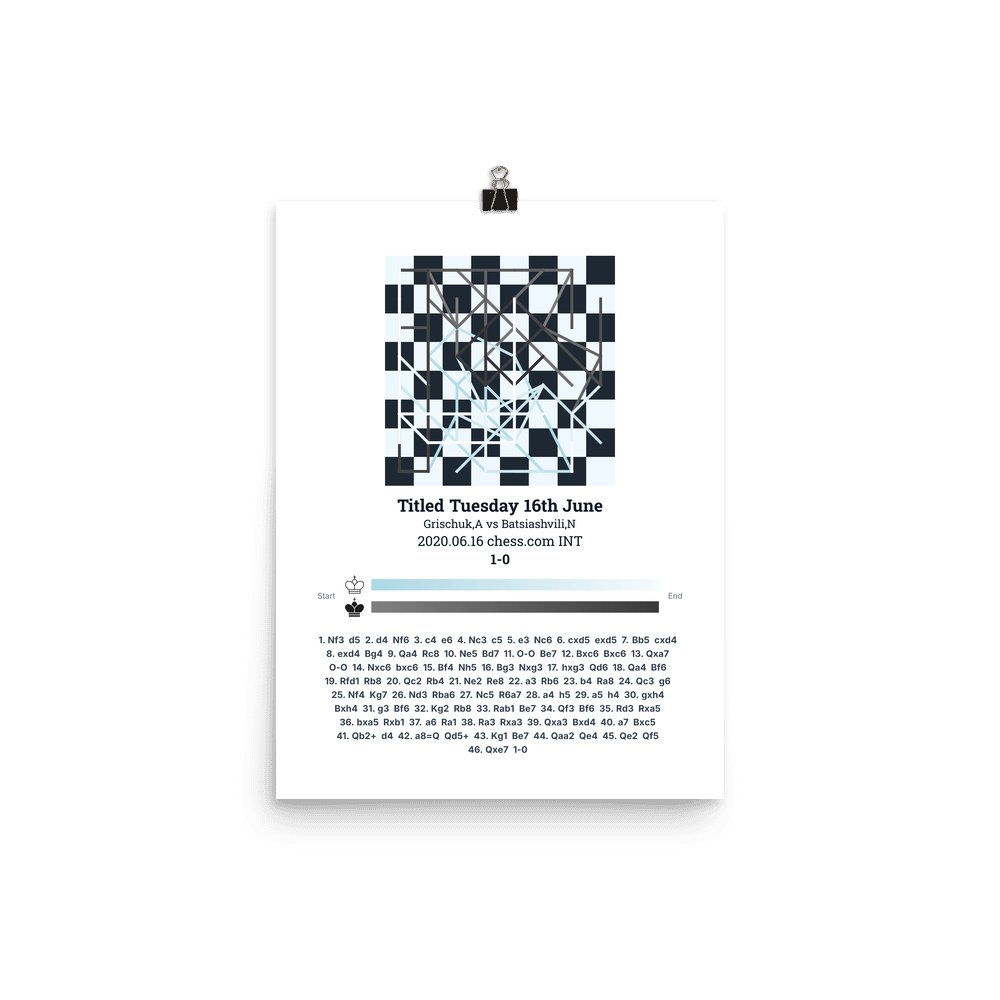 Museum-quality poster on thick, durable matte paper. A sharp, clean look for any chess visualisation.
