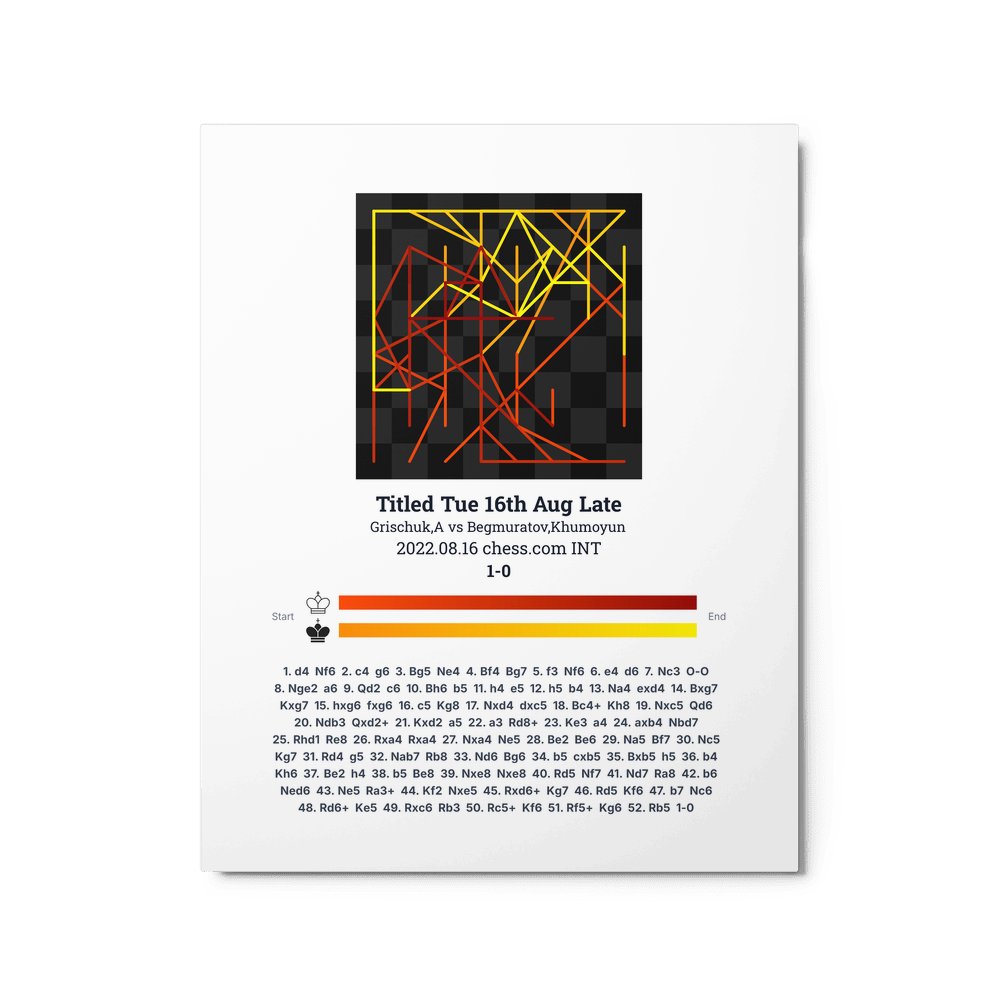 Museum-quality poster on thick, durable matte paper. A sharp, clean look for any chess visualisation.