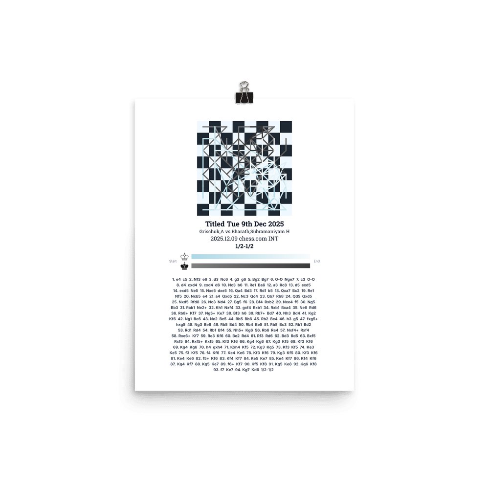 Museum-quality poster on thick, durable matte paper. A sharp, clean look for any chess visualisation.