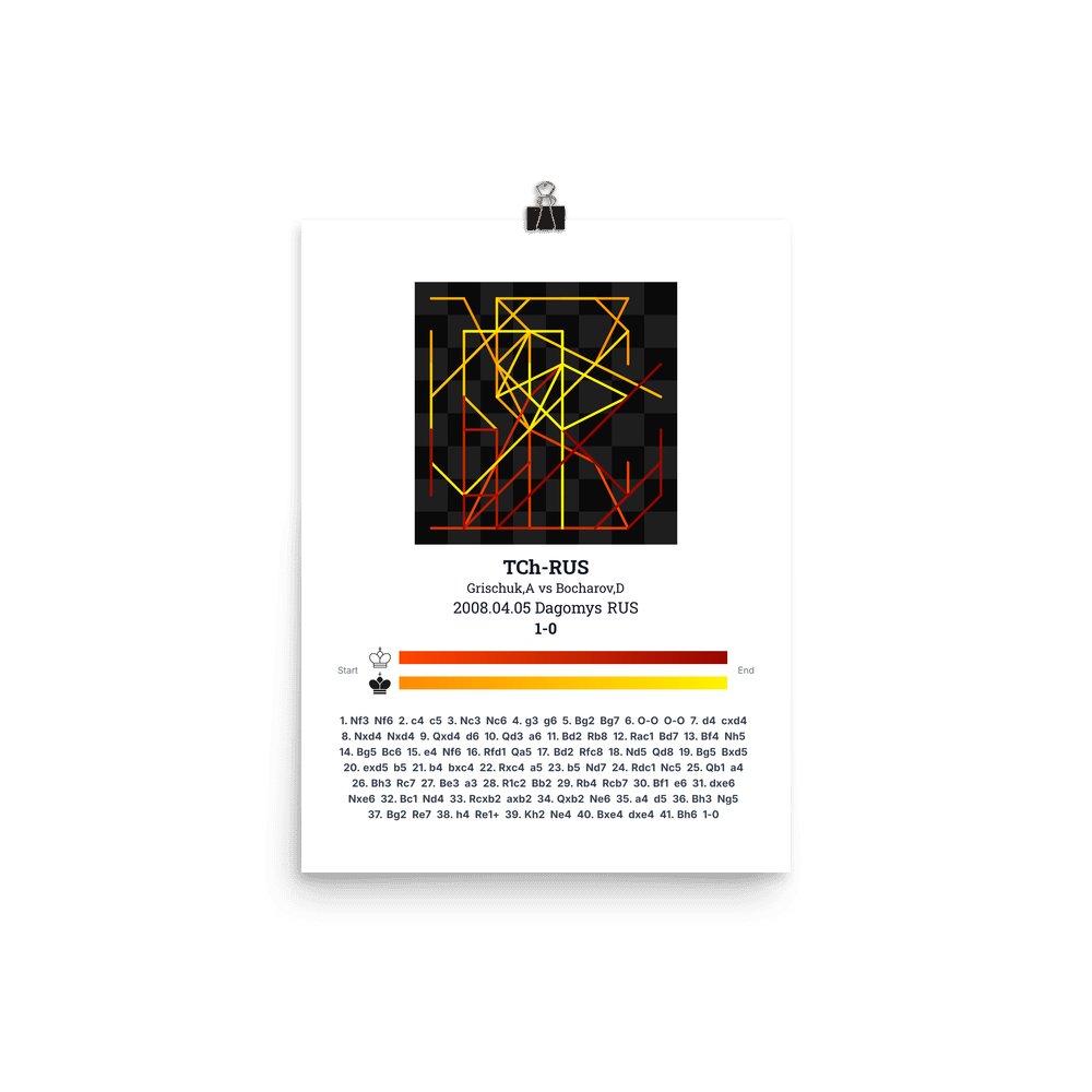 Museum-quality poster on thick, durable matte paper. A sharp, clean look for any chess visualisation.