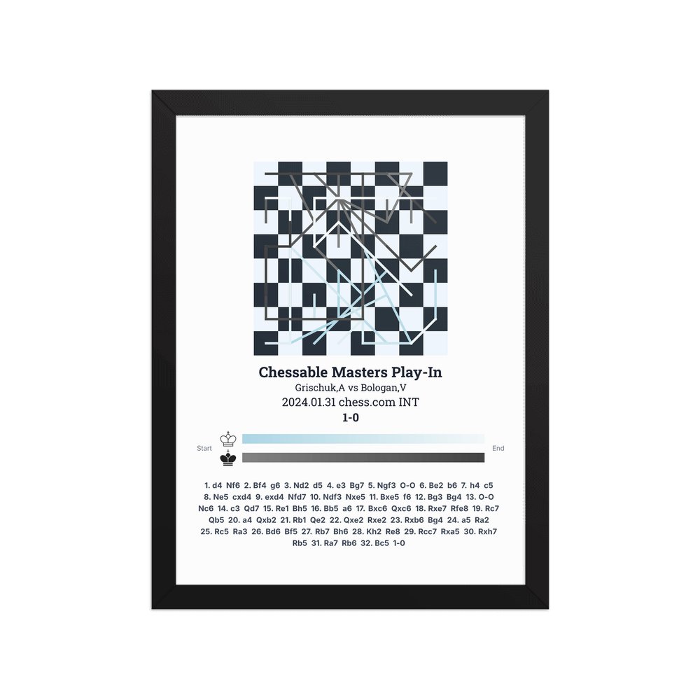 Museum-quality poster on thick, durable matte paper. A sharp, clean look for any chess visualisation.