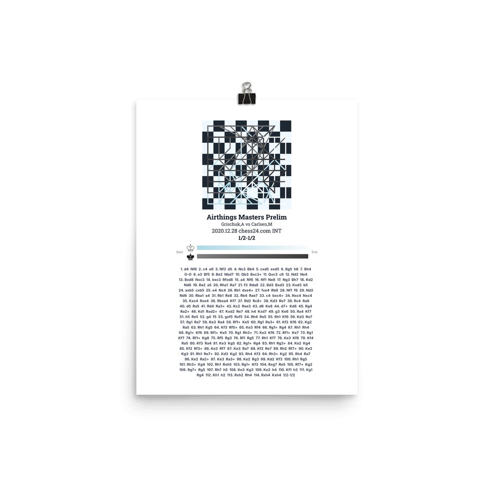 Museum-quality poster on thick, durable matte paper. A sharp, clean look for any chess visualisation.