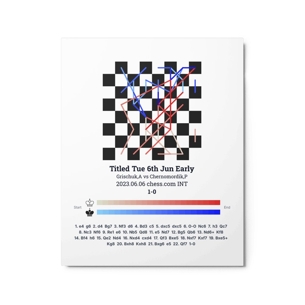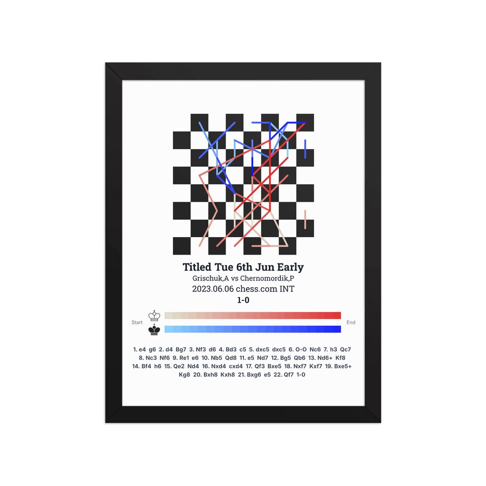 Museum-quality poster on thick, durable matte paper. A sharp, clean look for any chess visualisation.