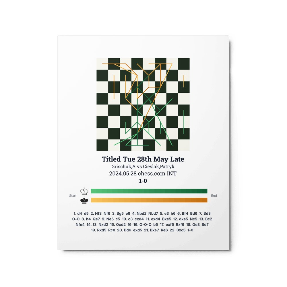 Museum-quality poster on thick, durable matte paper. A sharp, clean look for any chess visualisation.