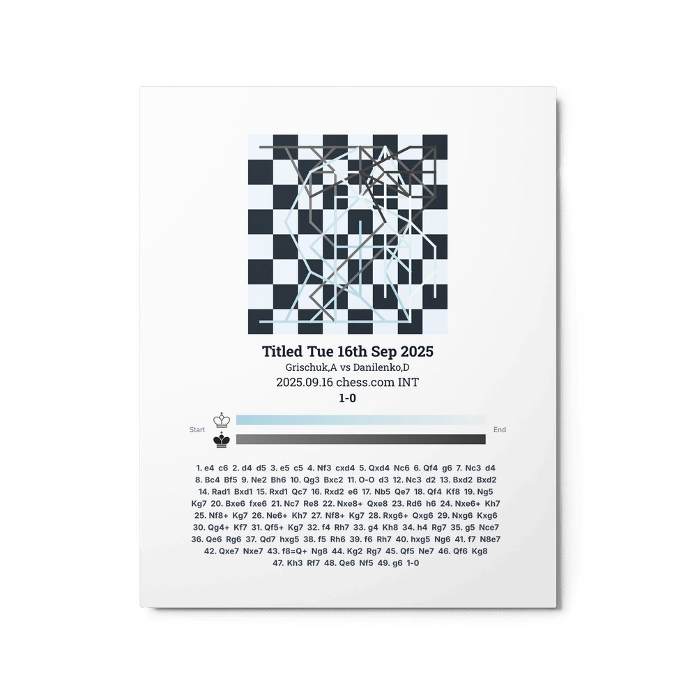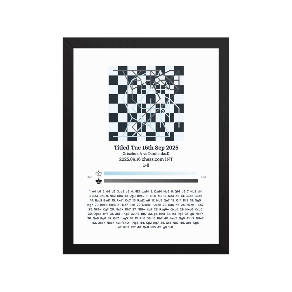 Museum-quality poster on thick, durable matte paper. A sharp, clean look for any chess visualisation.