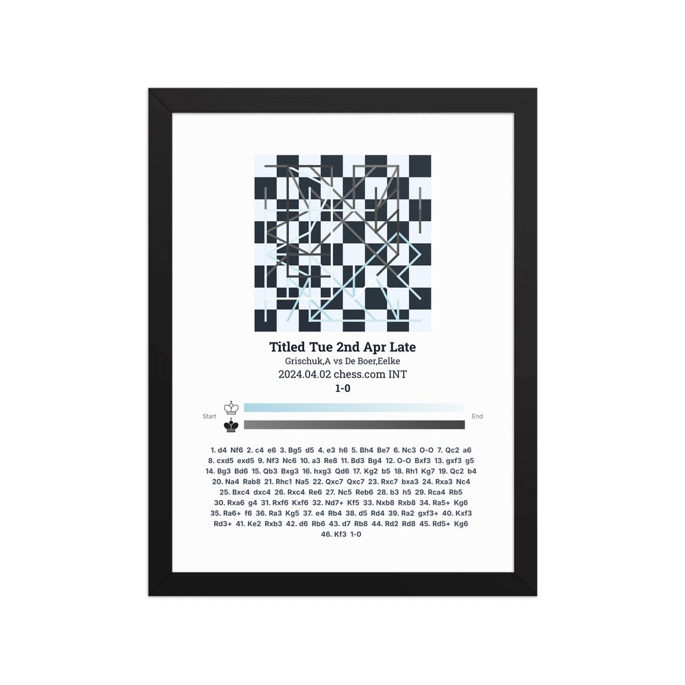 Museum-quality poster on thick, durable matte paper. A sharp, clean look for any chess visualisation.