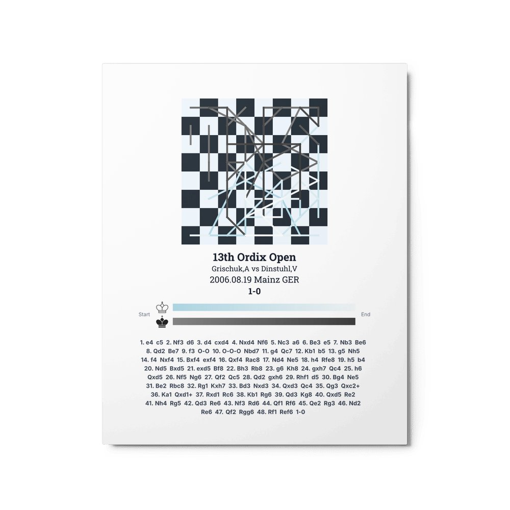 Museum-quality poster on thick, durable matte paper. A sharp, clean look for any chess visualisation.