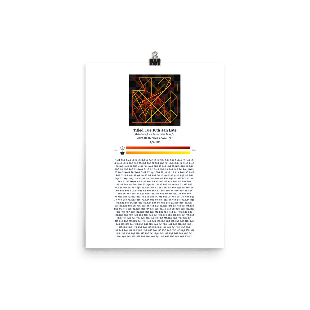 Museum-quality poster on thick, durable matte paper. A sharp, clean look for any chess visualisation.