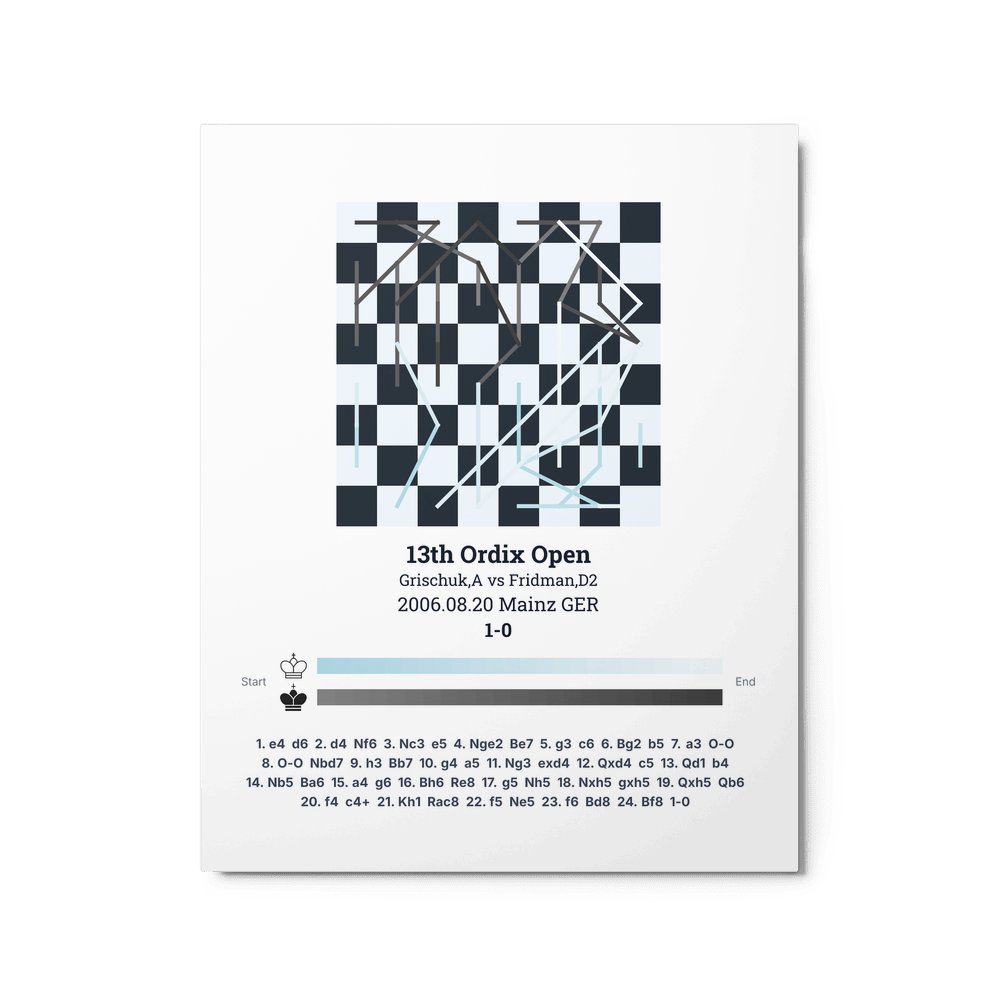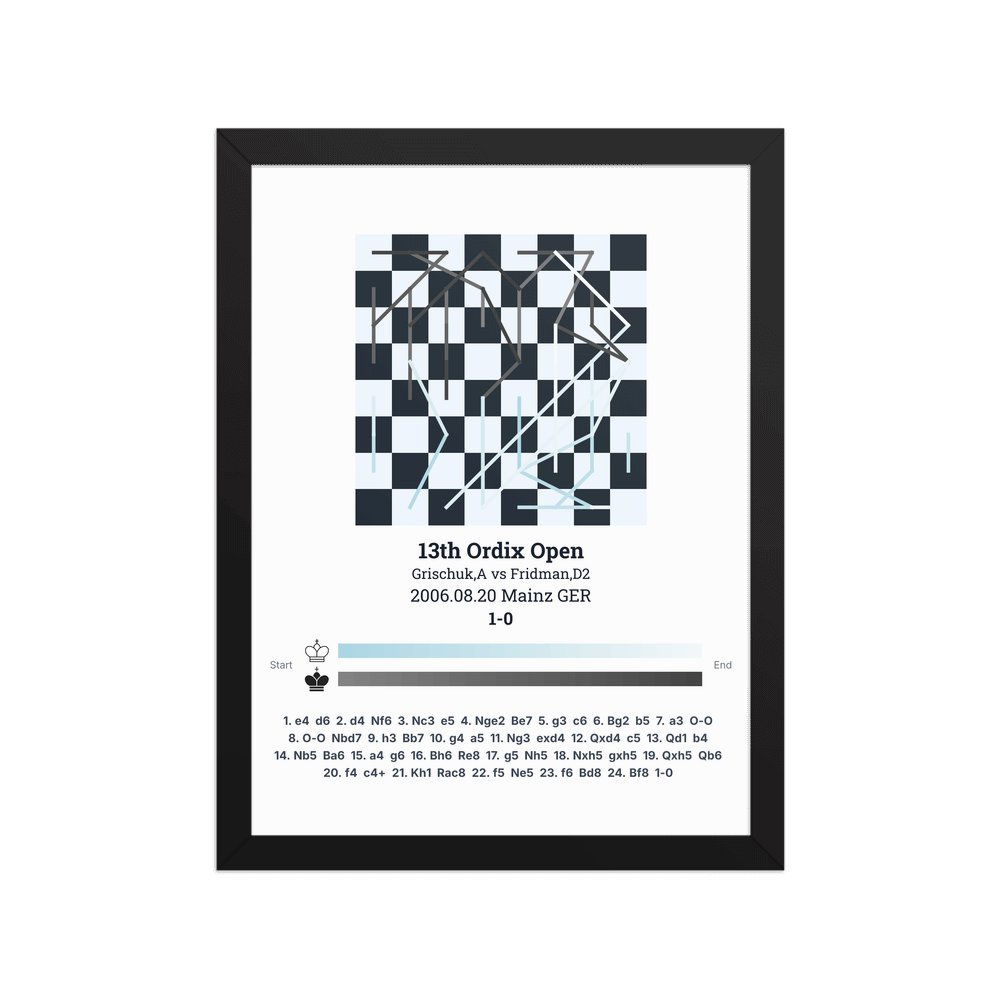 Museum-quality poster on thick, durable matte paper. A sharp, clean look for any chess visualisation.