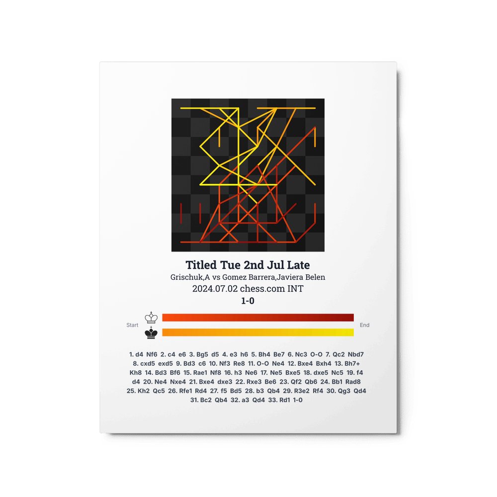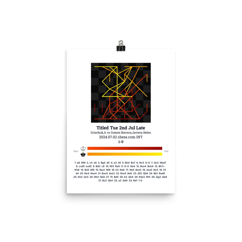 Museum-quality poster on thick, durable matte paper. A sharp, clean look for any chess visualisation.