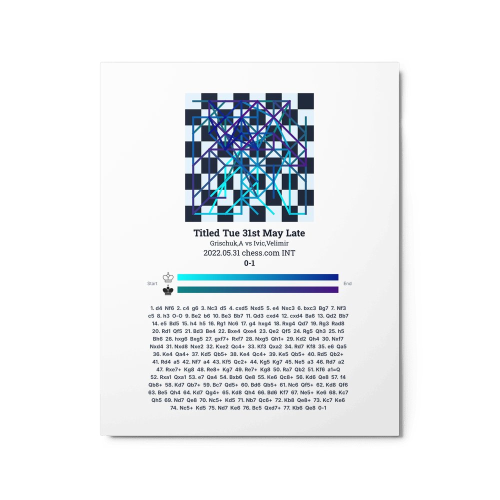 Museum-quality poster on thick, durable matte paper. A sharp, clean look for any chess visualisation.