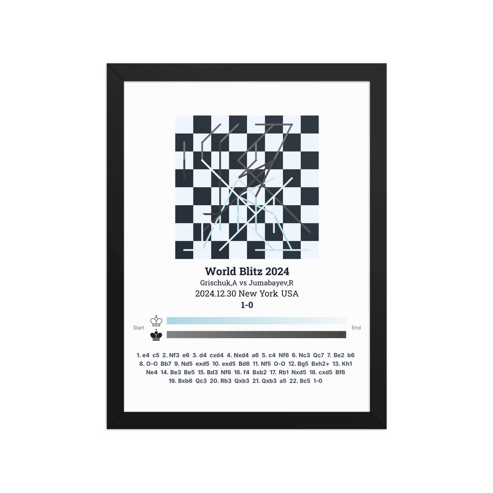 Museum-quality poster on thick, durable matte paper. A sharp, clean look for any chess visualisation.