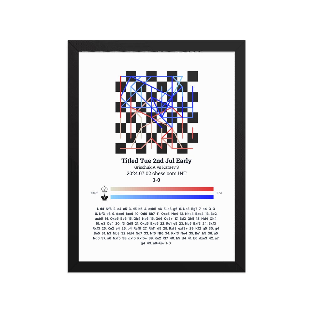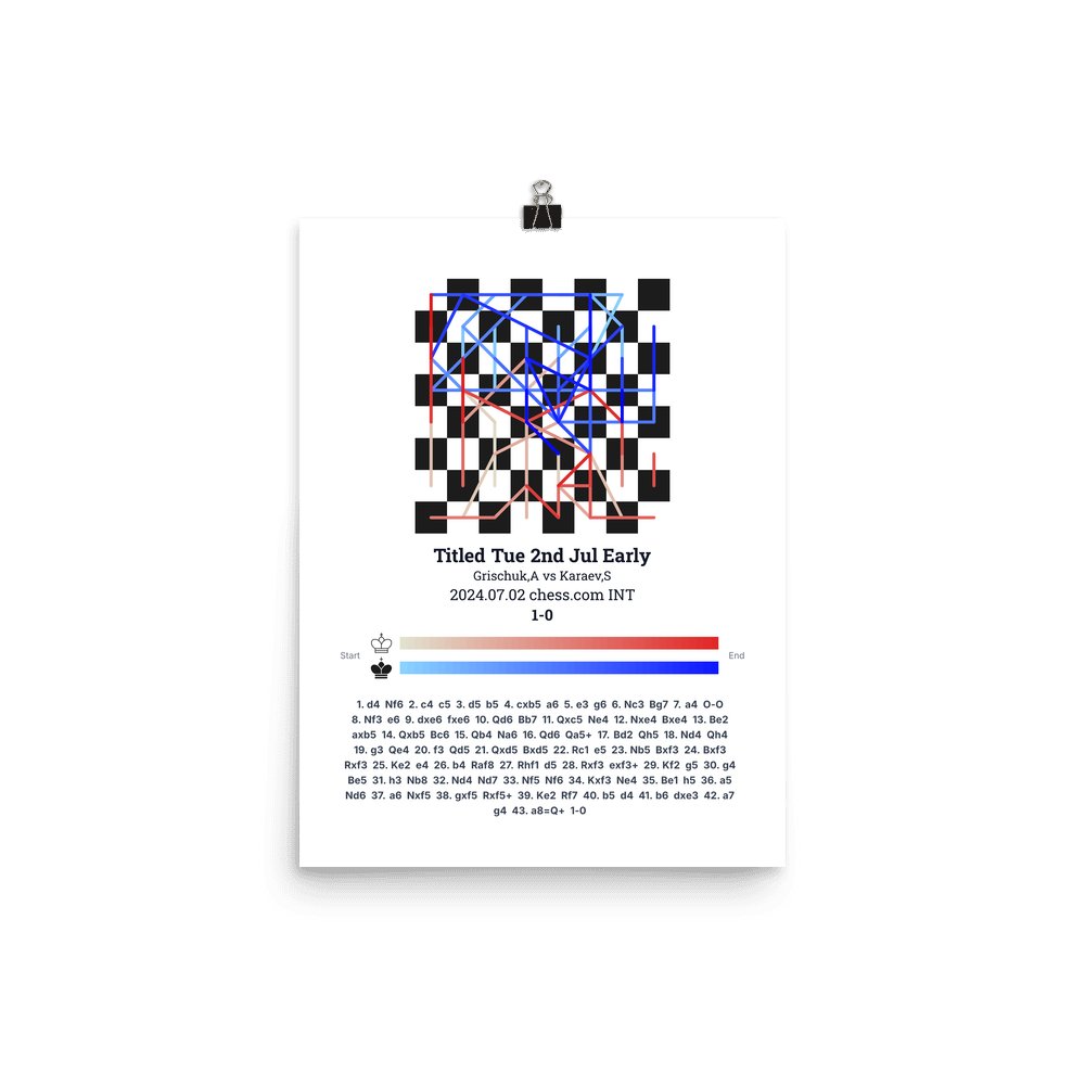 Museum-quality poster on thick, durable matte paper. A sharp, clean look for any chess visualisation.