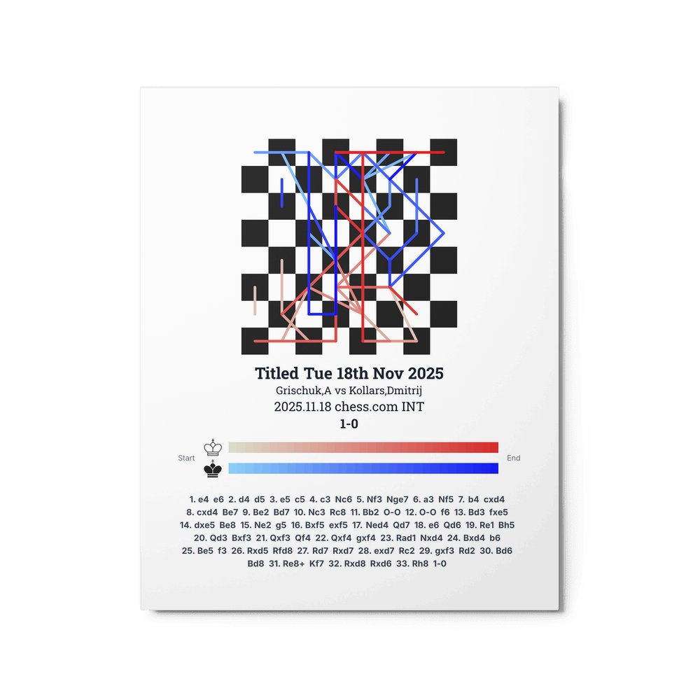 Museum-quality poster on thick, durable matte paper. A sharp, clean look for any chess visualisation.