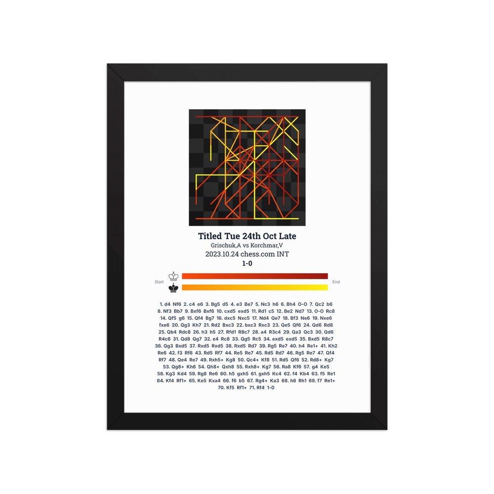 Museum-quality poster on thick, durable matte paper. A sharp, clean look for any chess visualisation.