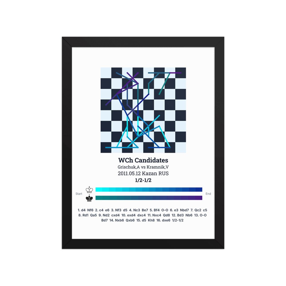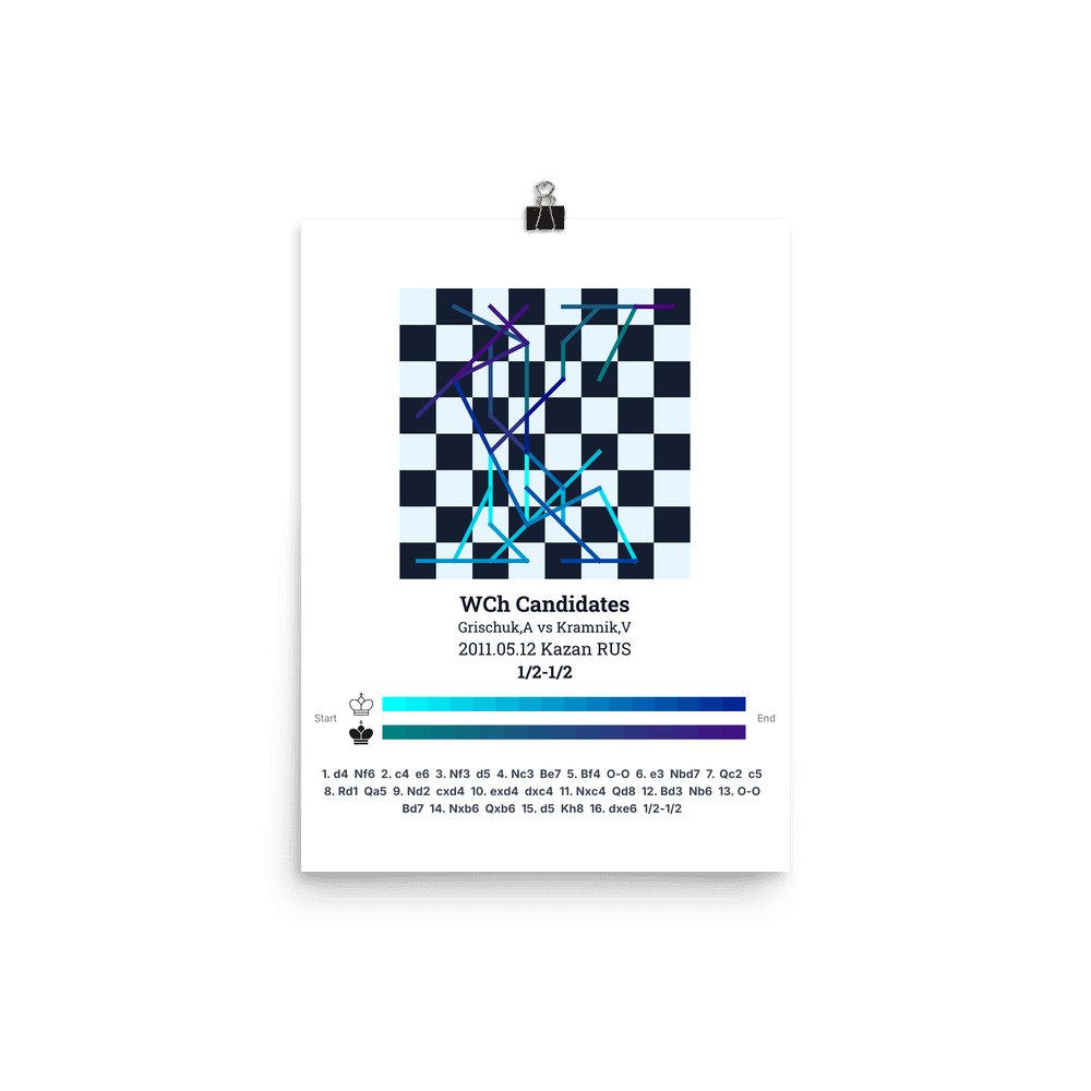 Museum-quality poster on thick, durable matte paper. A sharp, clean look for any chess visualisation.
