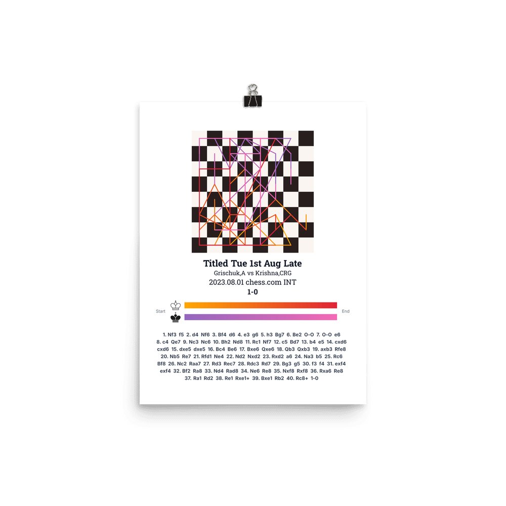 Museum-quality poster on thick, durable matte paper. A sharp, clean look for any chess visualisation.