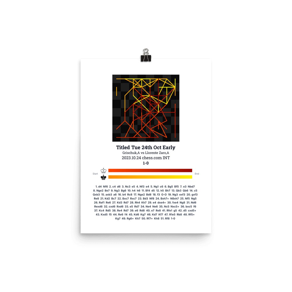 Museum-quality poster on thick, durable matte paper. A sharp, clean look for any chess visualisation.