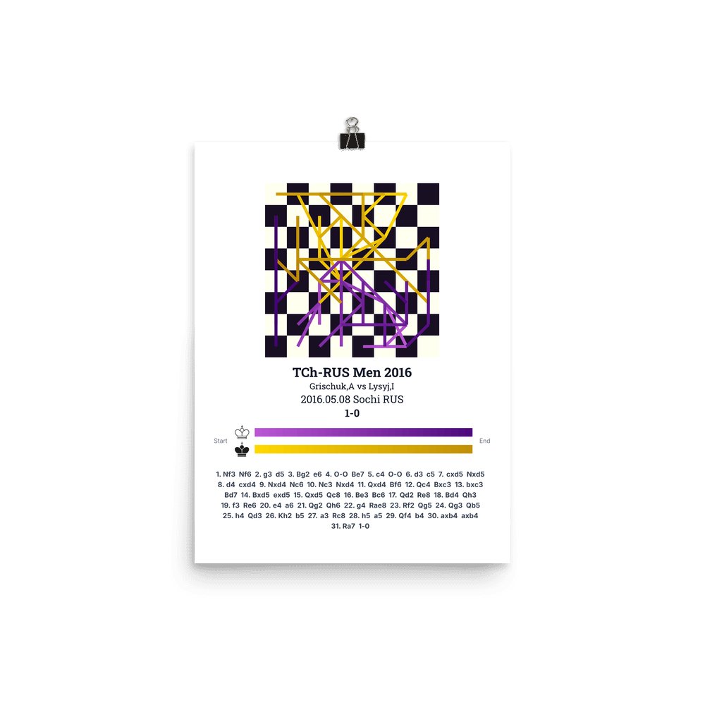 Museum-quality poster on thick, durable matte paper. A sharp, clean look for any chess visualisation.
