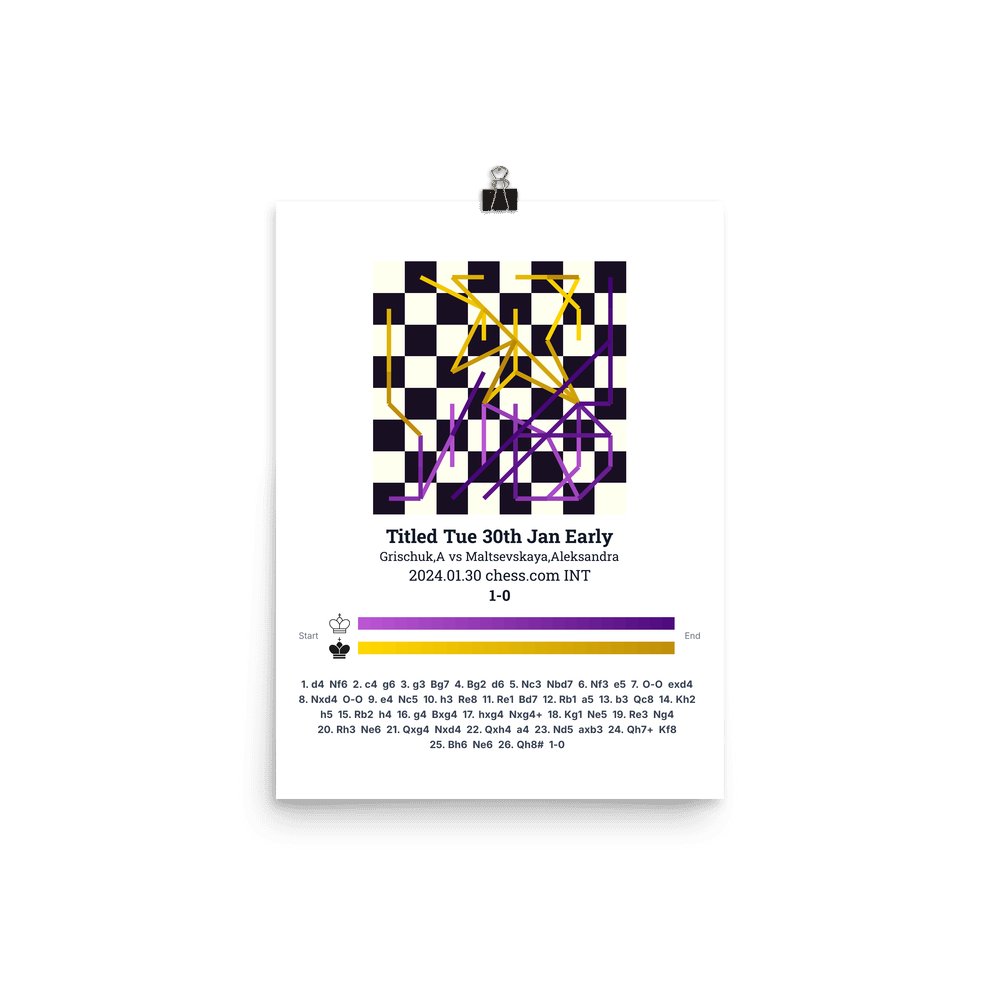 Museum-quality poster on thick, durable matte paper. A sharp, clean look for any chess visualisation.