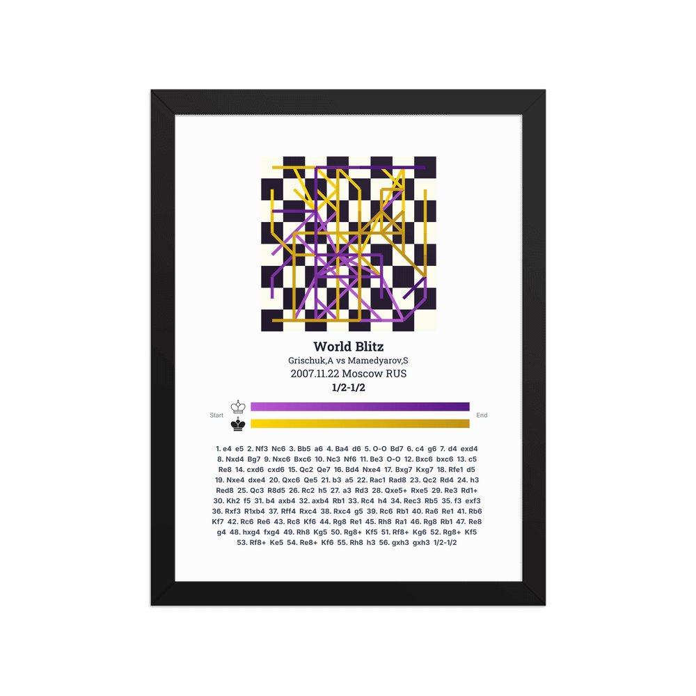 Museum-quality poster on thick, durable matte paper. A sharp, clean look for any chess visualisation.