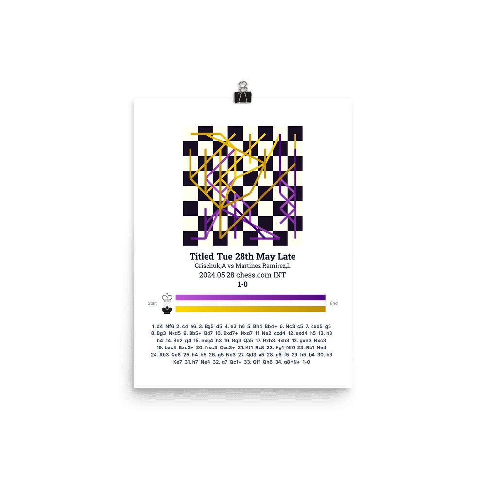 Museum-quality poster on thick, durable matte paper. A sharp, clean look for any chess visualisation.