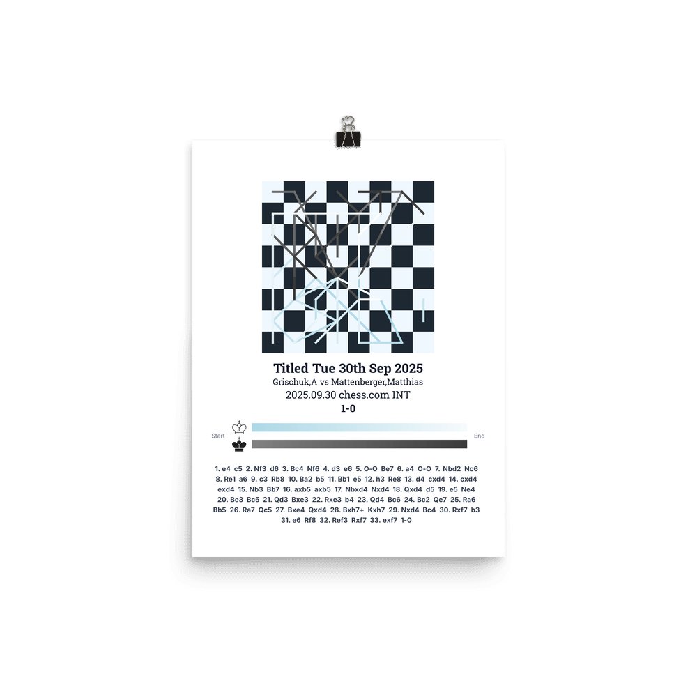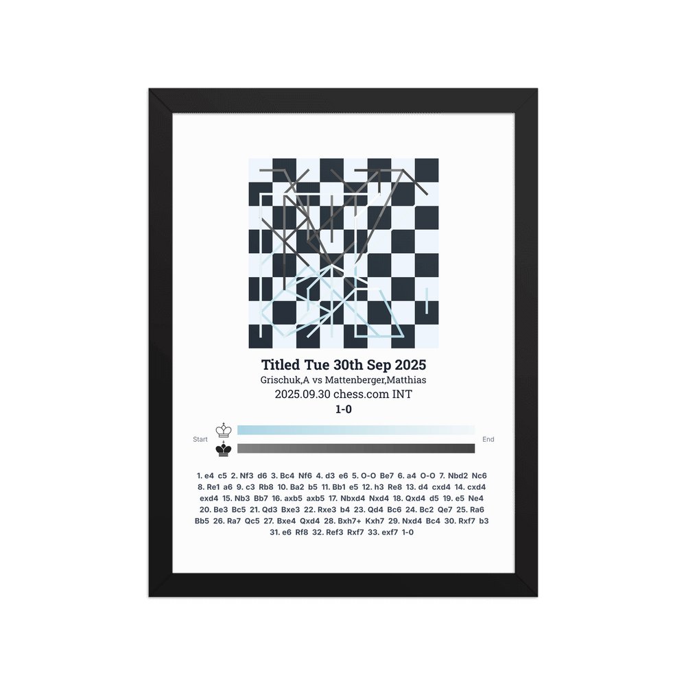 Museum-quality poster on thick, durable matte paper. A sharp, clean look for any chess visualisation.