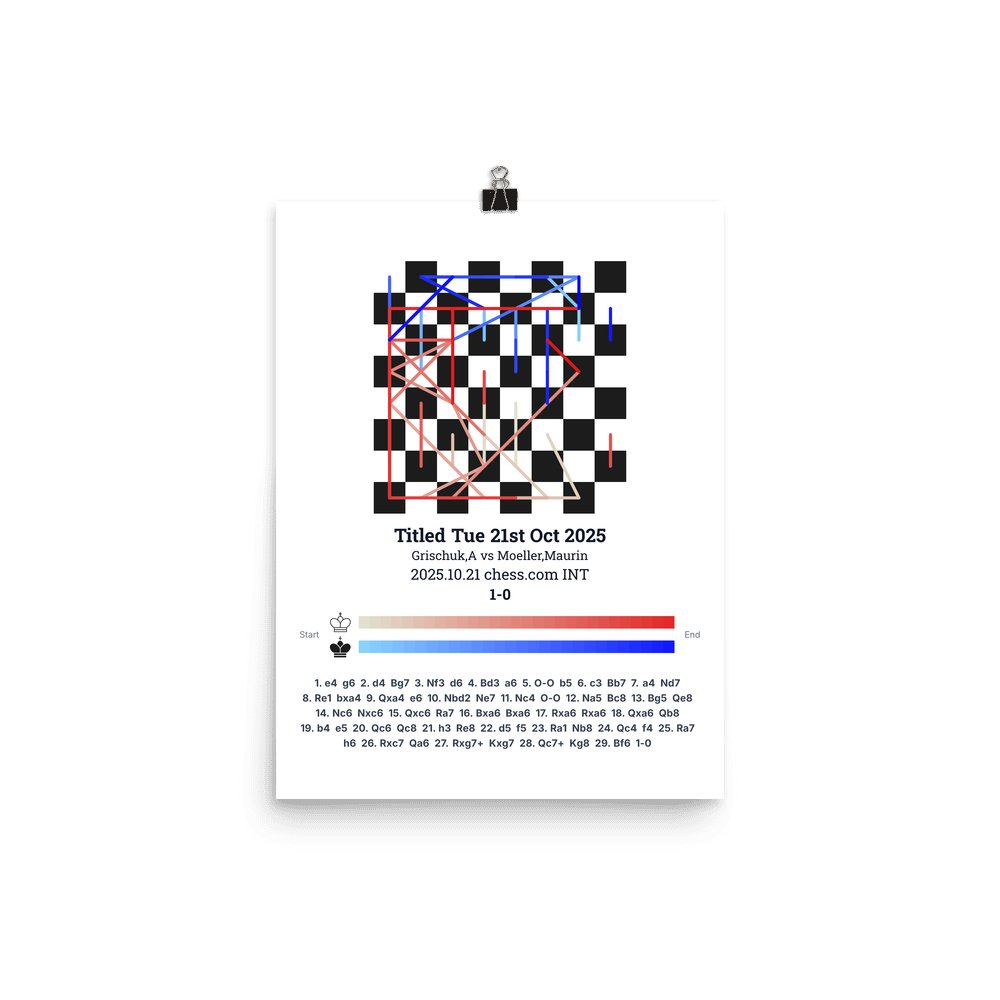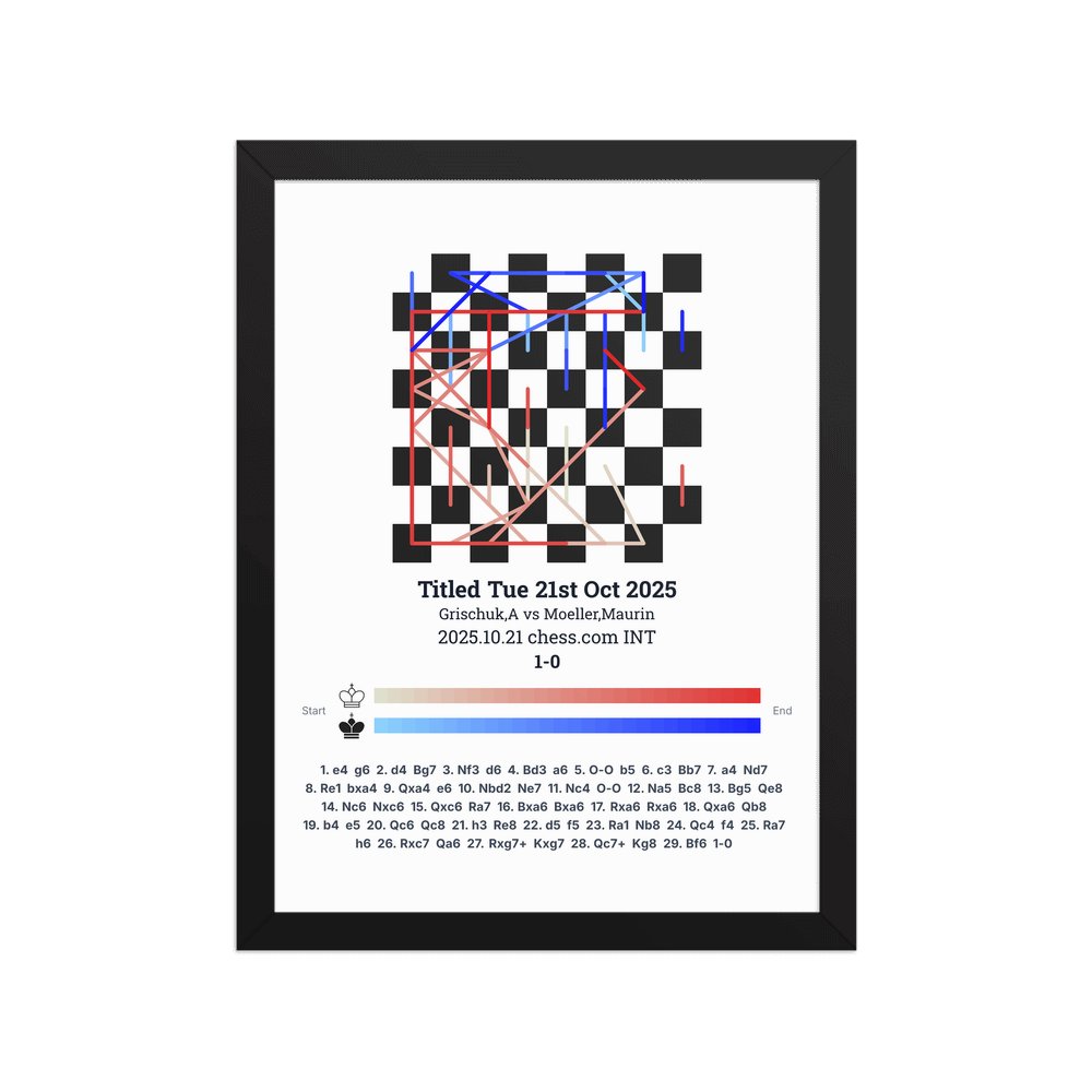 Museum-quality poster on thick, durable matte paper. A sharp, clean look for any chess visualisation.