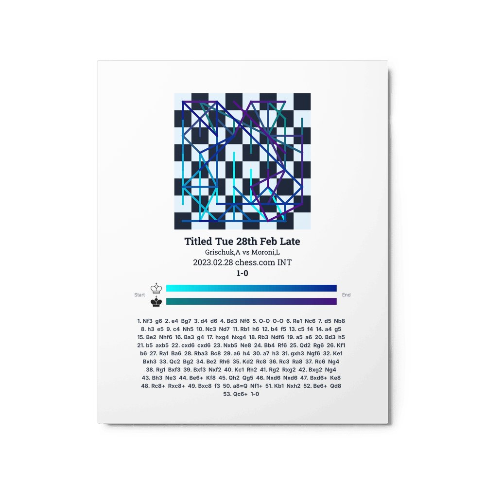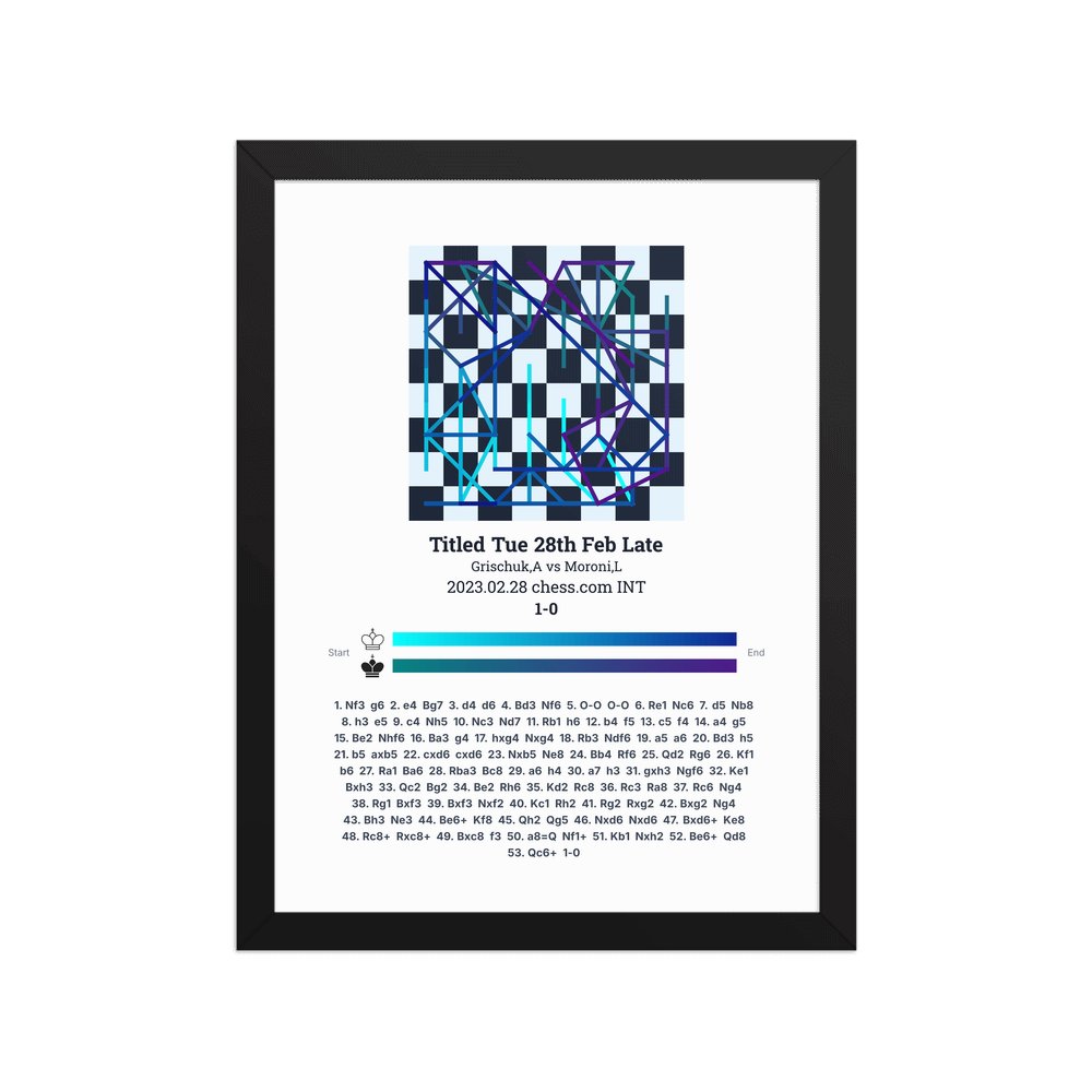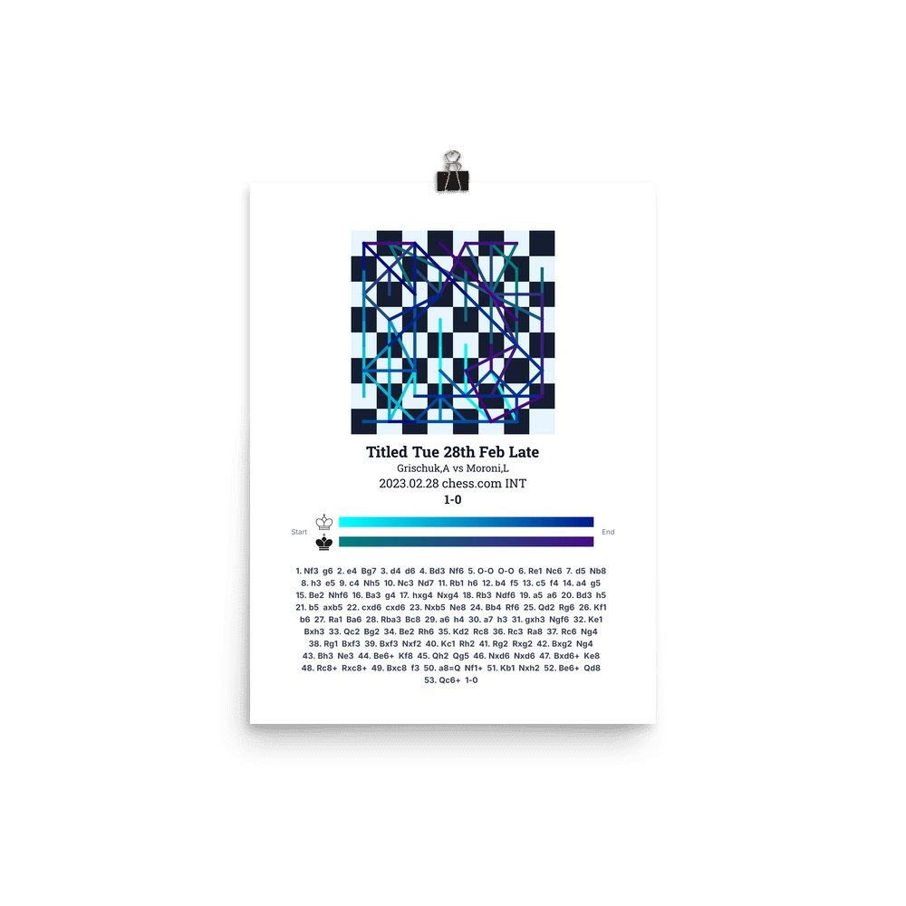 Museum-quality poster on thick, durable matte paper. A sharp, clean look for any chess visualisation.