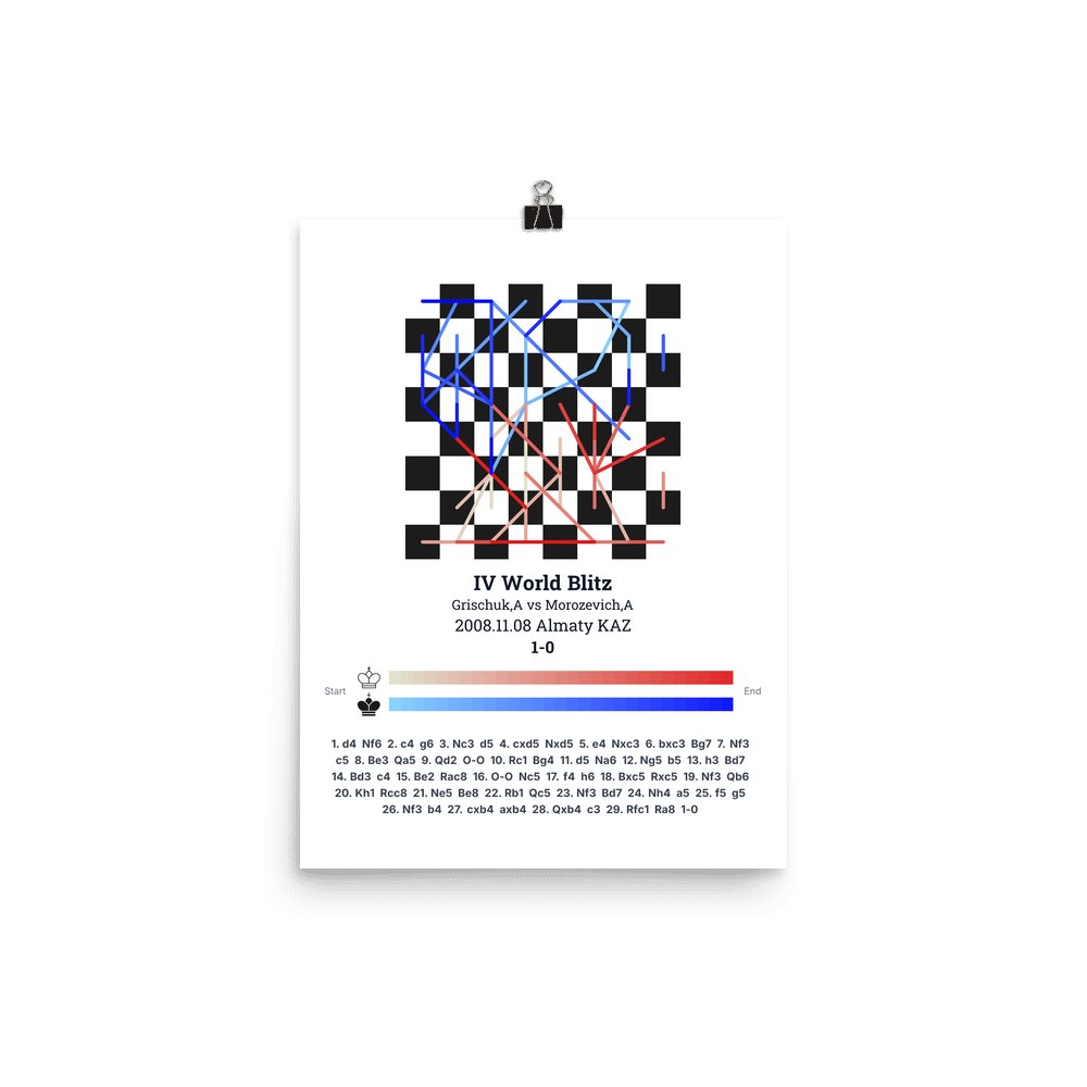 Museum-quality poster on thick, durable matte paper. A sharp, clean look for any chess visualisation.