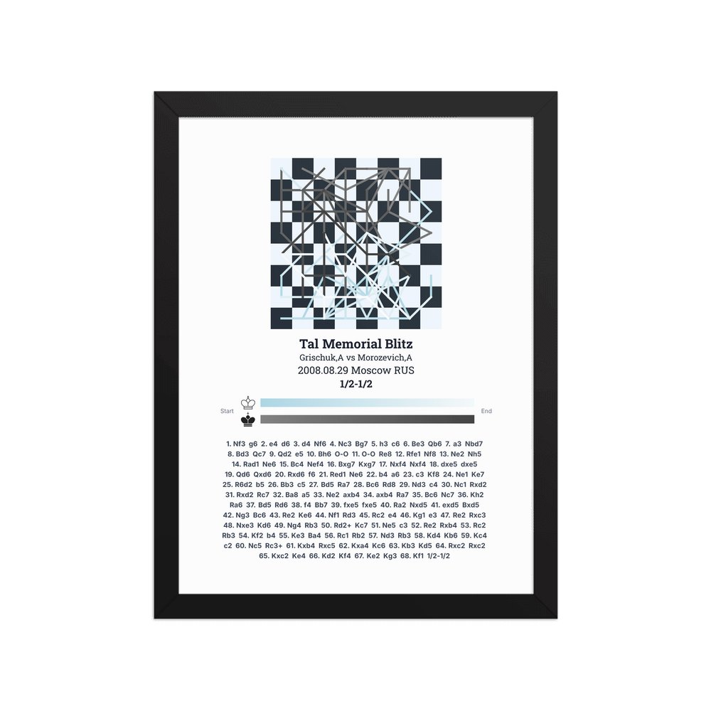 Museum-quality poster on thick, durable matte paper. A sharp, clean look for any chess visualisation.