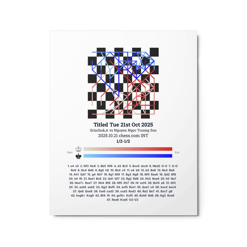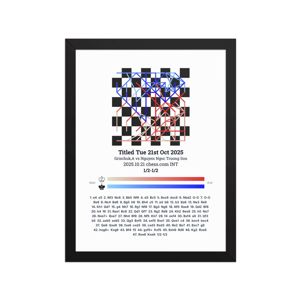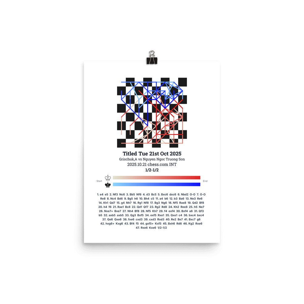 Museum-quality poster on thick, durable matte paper. A sharp, clean look for any chess visualisation.