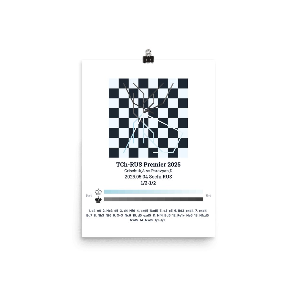 Museum-quality poster on thick, durable matte paper. A sharp, clean look for any chess visualisation.