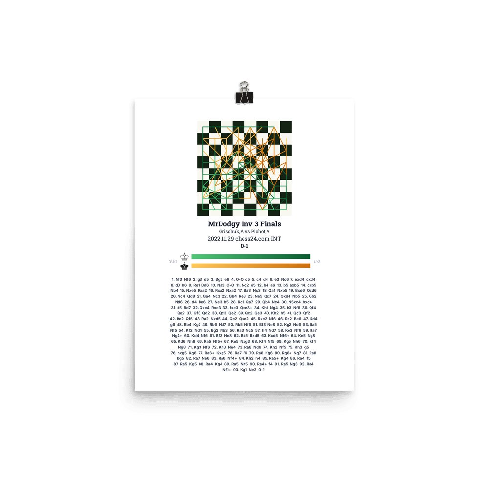 Museum-quality poster on thick, durable matte paper. A sharp, clean look for any chess visualisation.