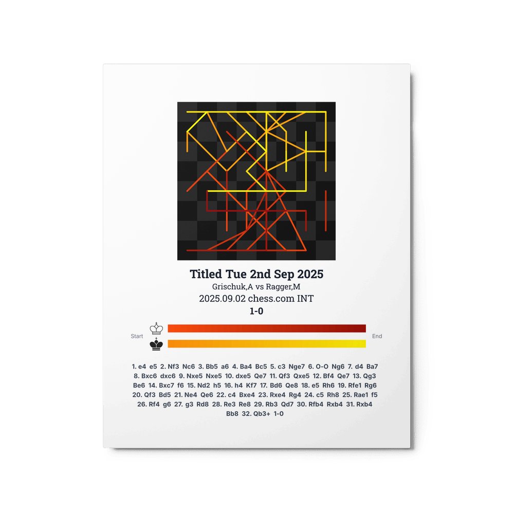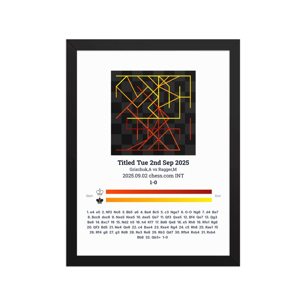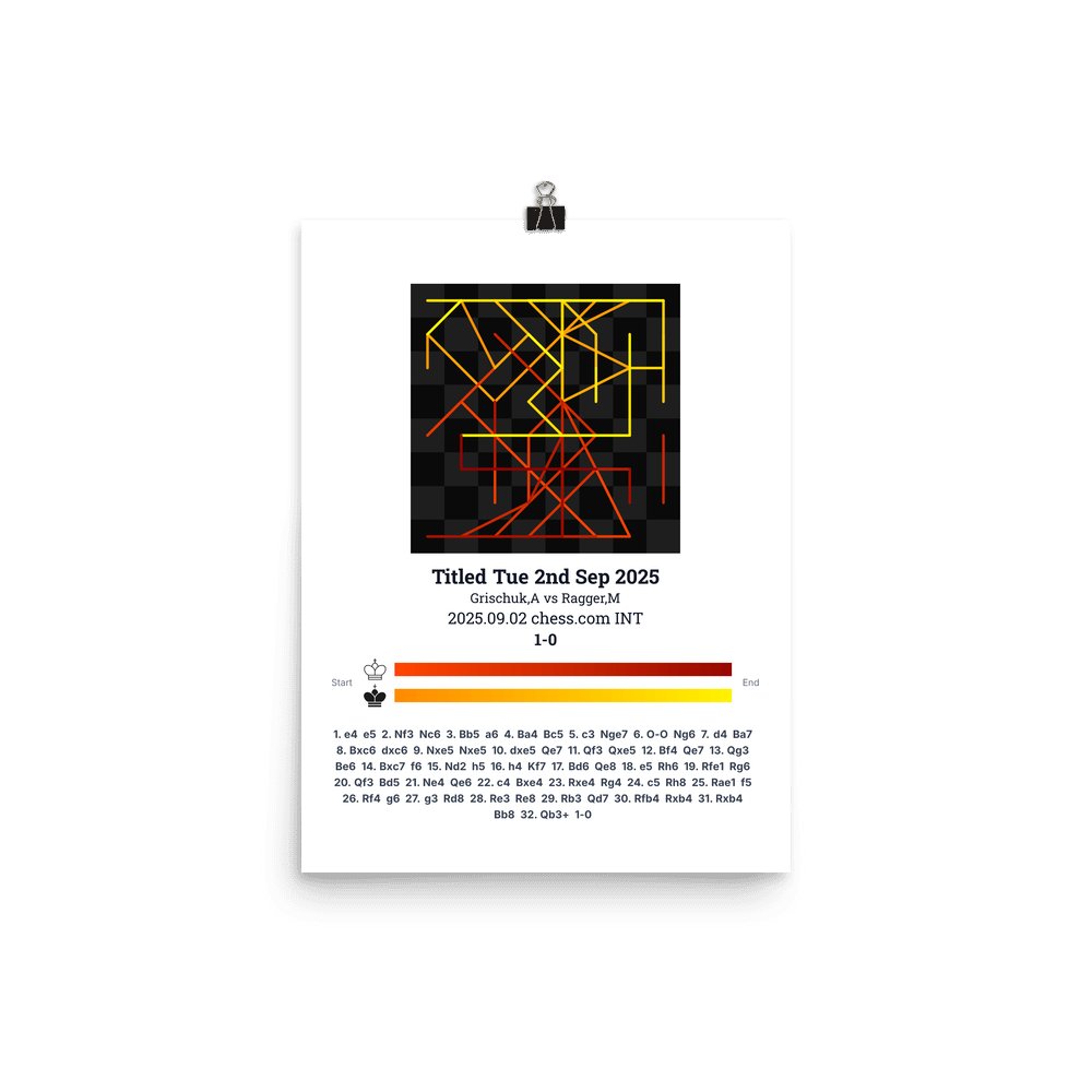 Museum-quality poster on thick, durable matte paper. A sharp, clean look for any chess visualisation.