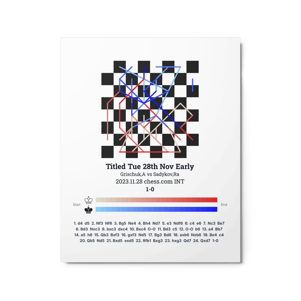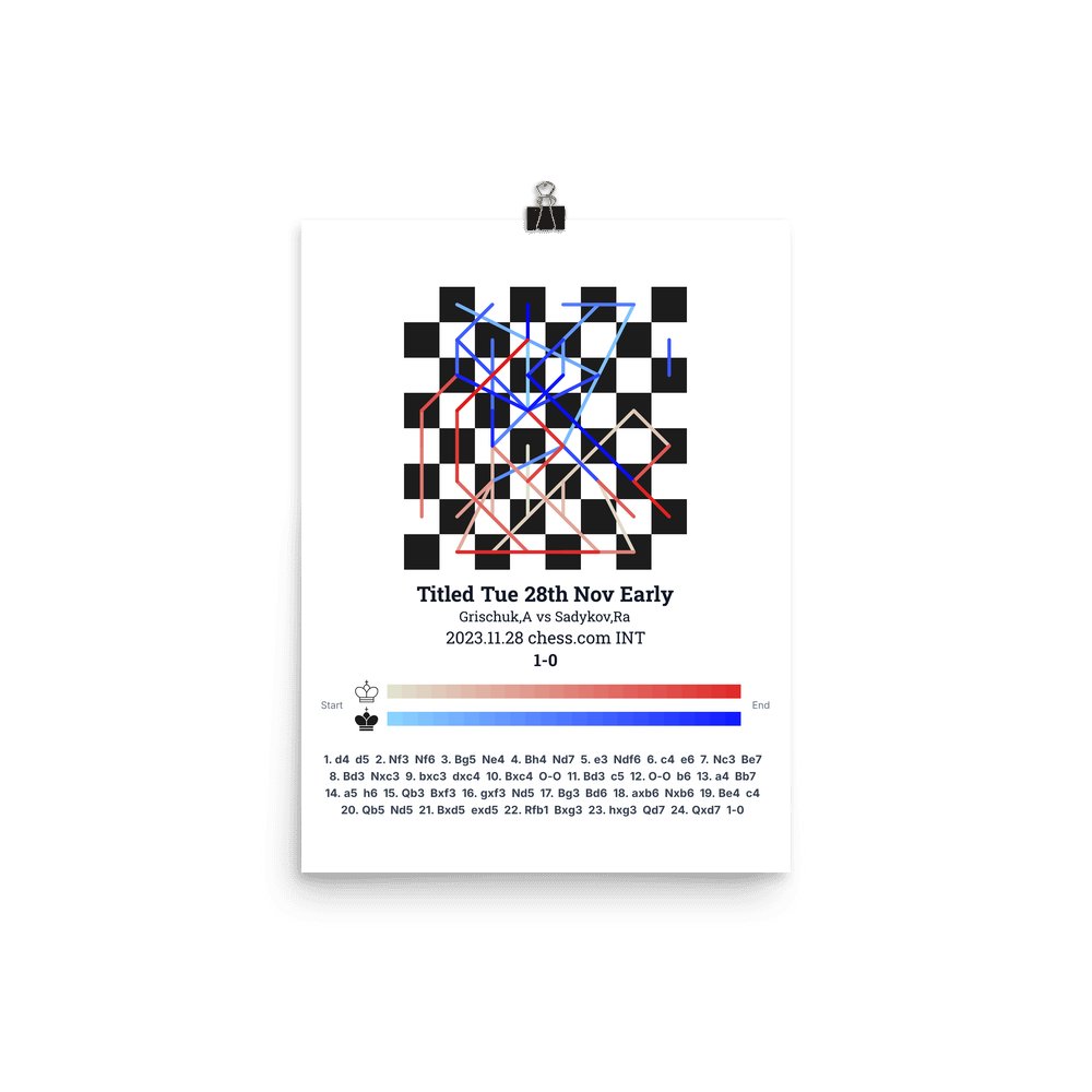 Museum-quality poster on thick, durable matte paper. A sharp, clean look for any chess visualisation.