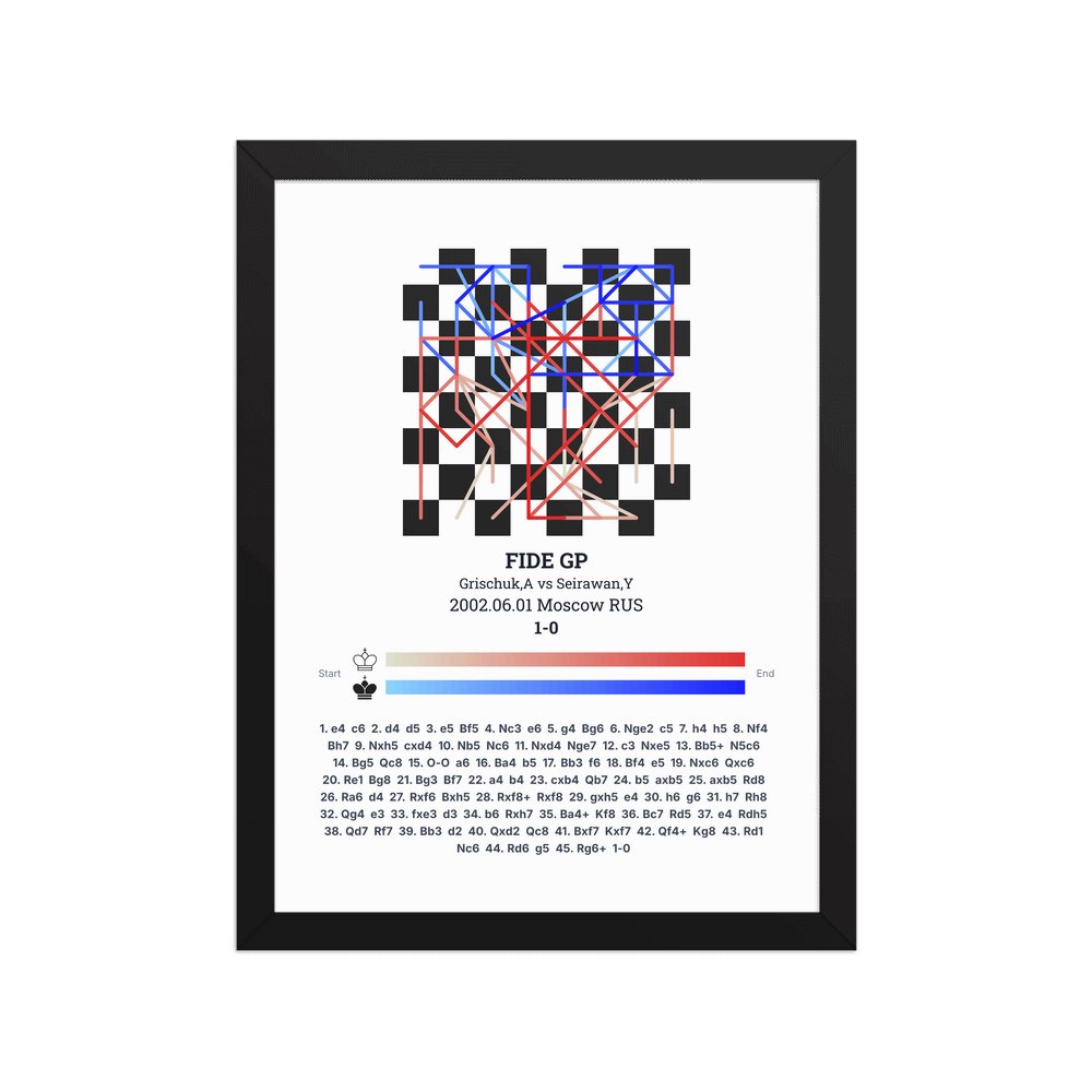 Museum-quality poster on thick, durable matte paper. A sharp, clean look for any chess visualisation.