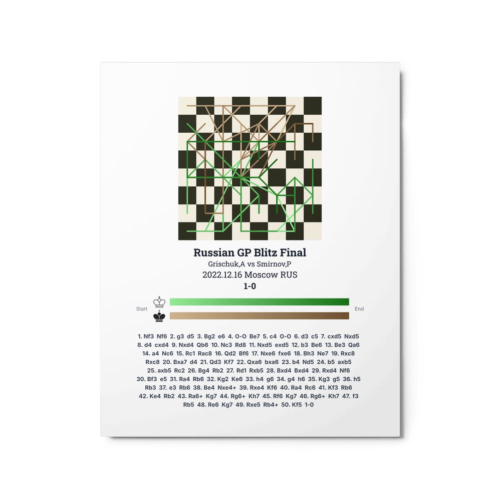 Museum-quality poster on thick, durable matte paper. A sharp, clean look for any chess visualisation.